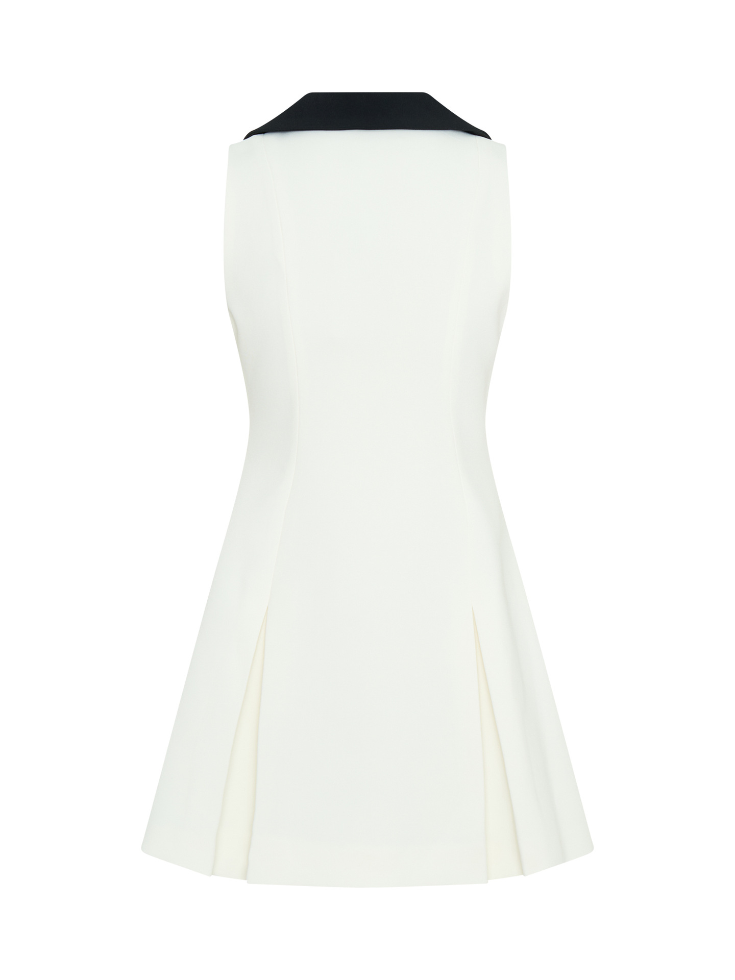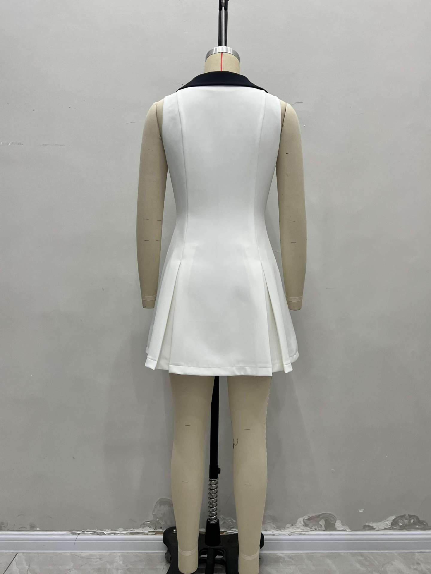Socialite Large Collared Metal Buckle Sleeveless Waist Controlled Slimming Tuxedo Dress High Grade