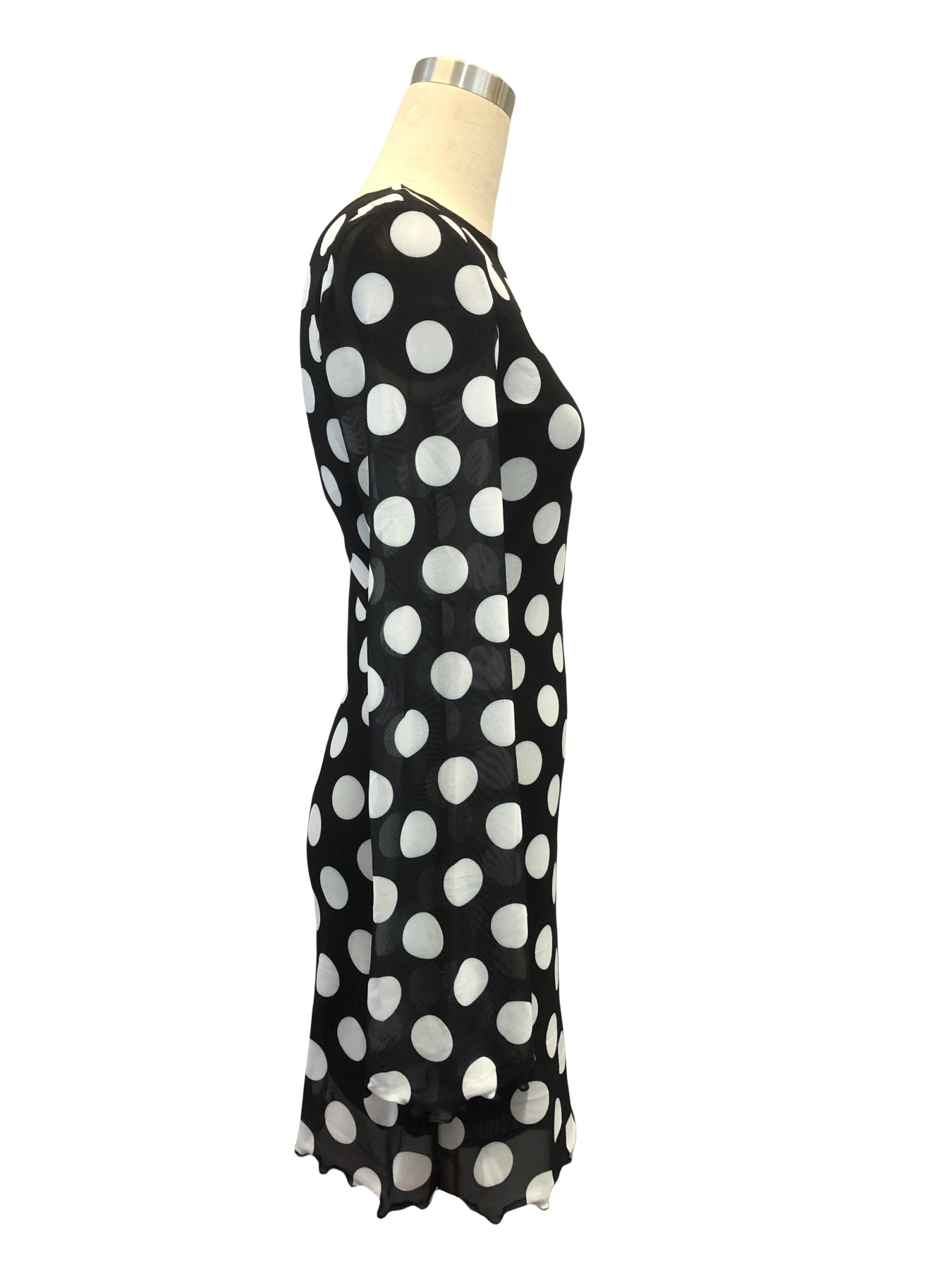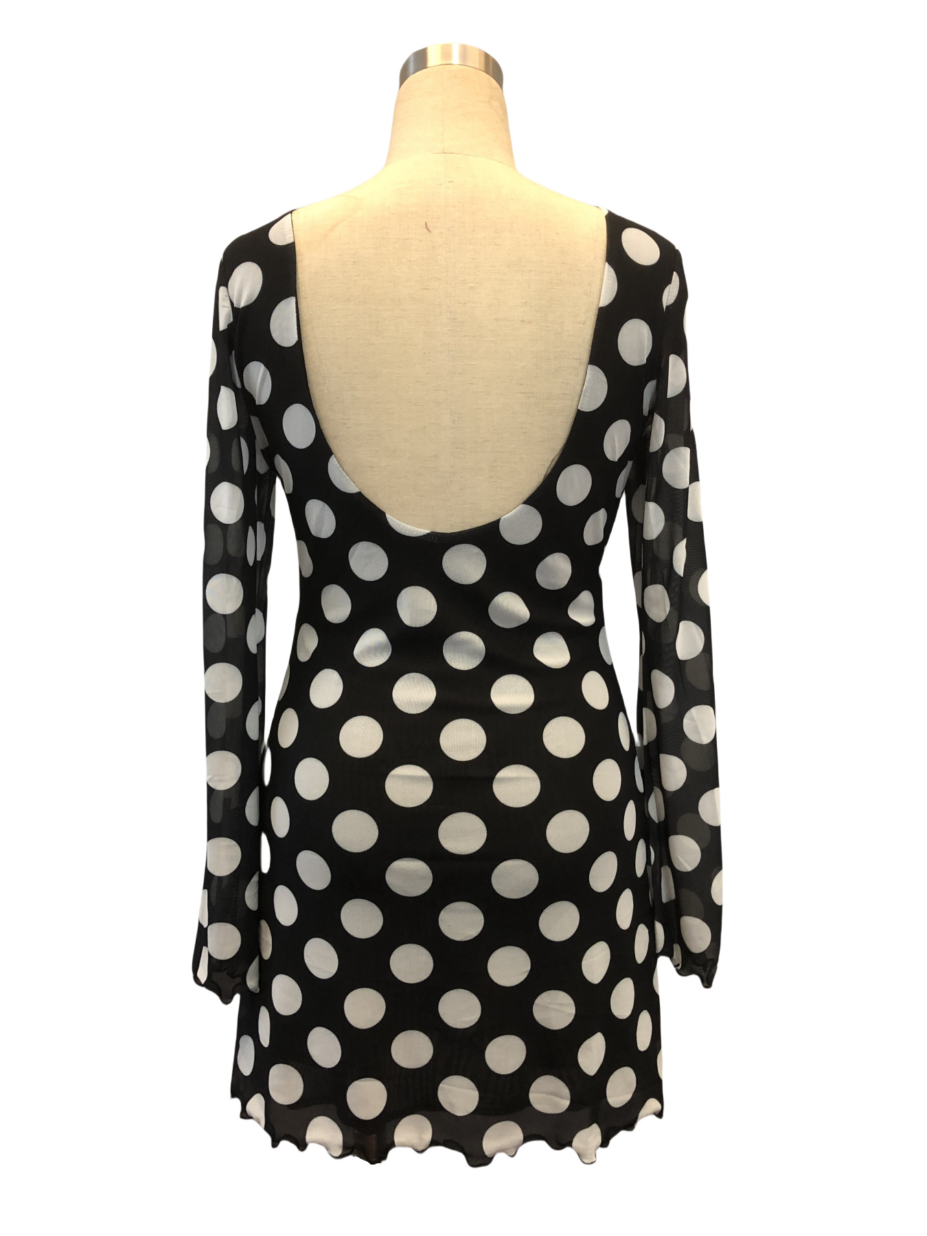 Spring Summer Lady Sexy Polka Dot Backless Mesh Flare Sleeve Mini Dress