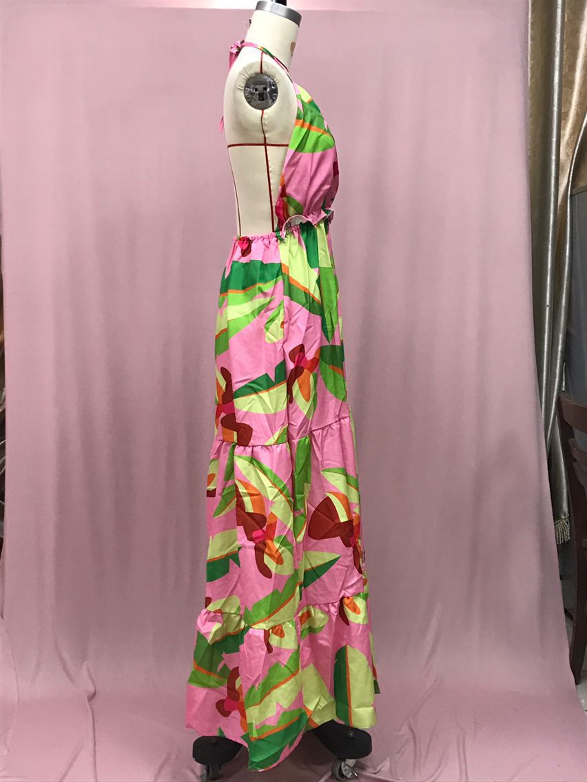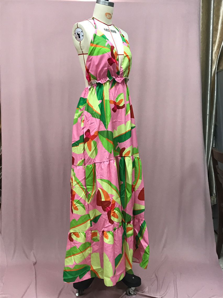 Spring Summer Women Clothing Deep V Plunge neck Backless Dress Bohemian Floral Strap Dress Women