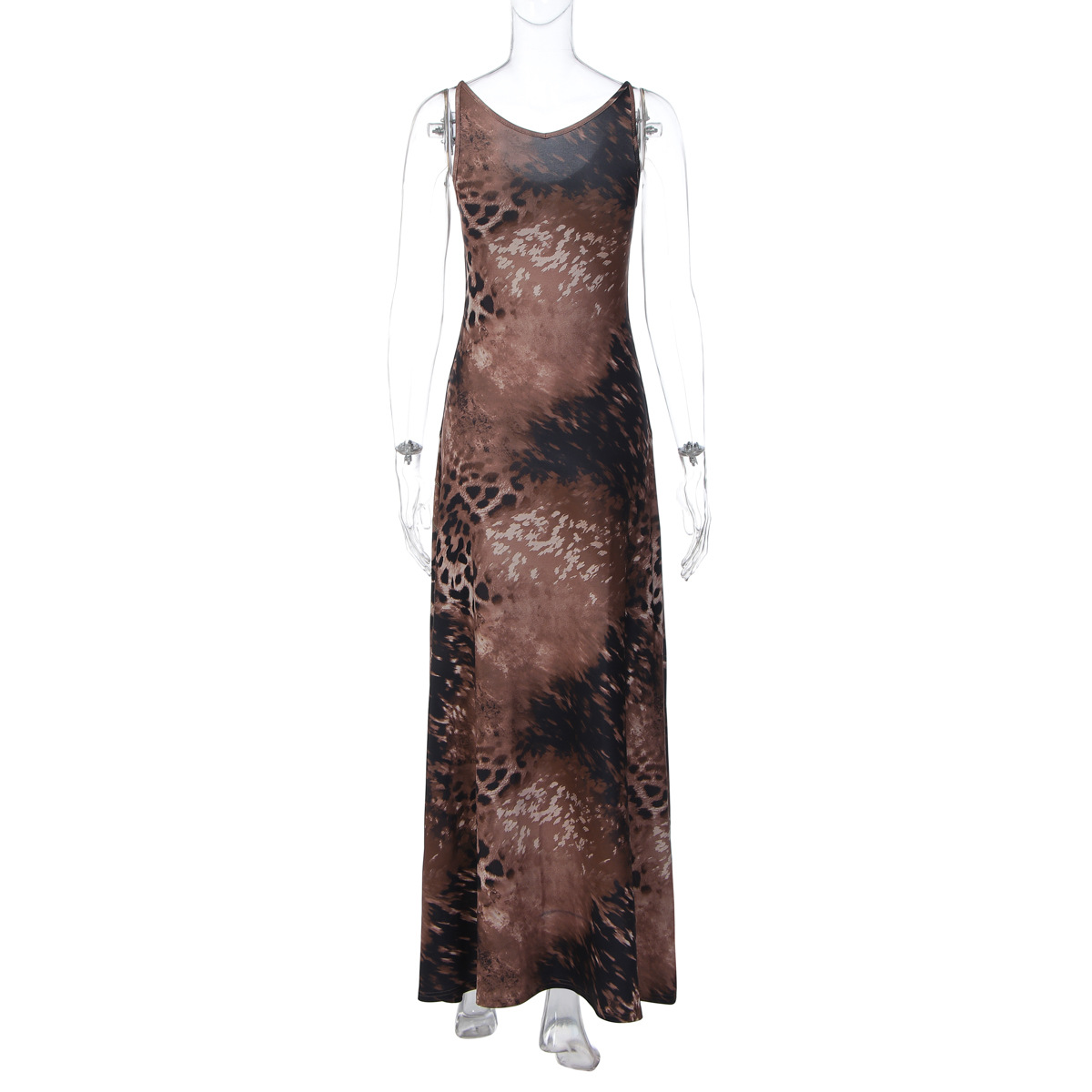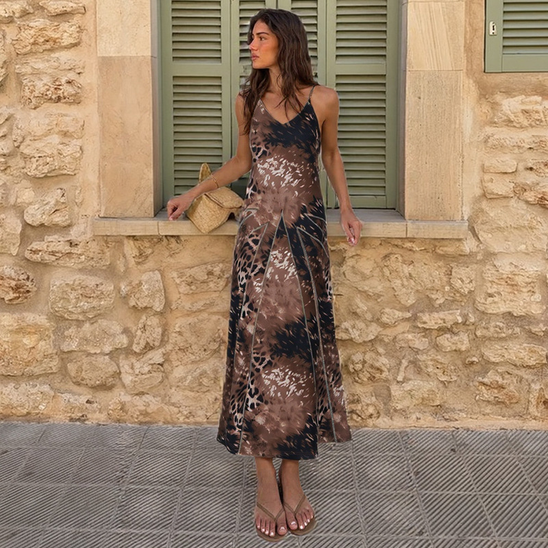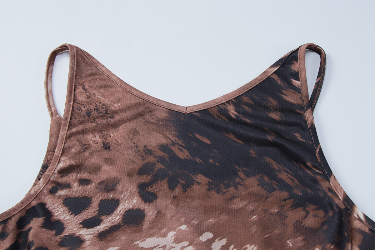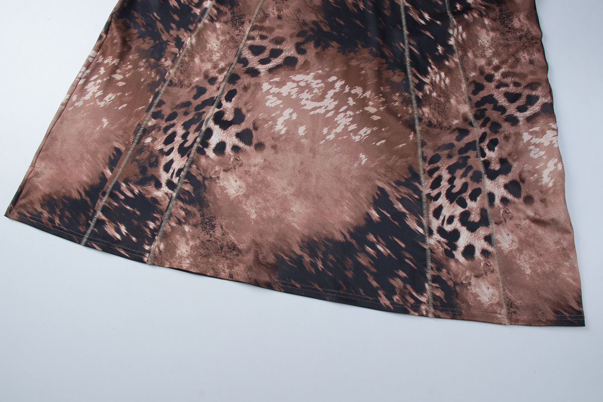 Spring Women Clothes Leopard Print Slim Street Long Tie Dress