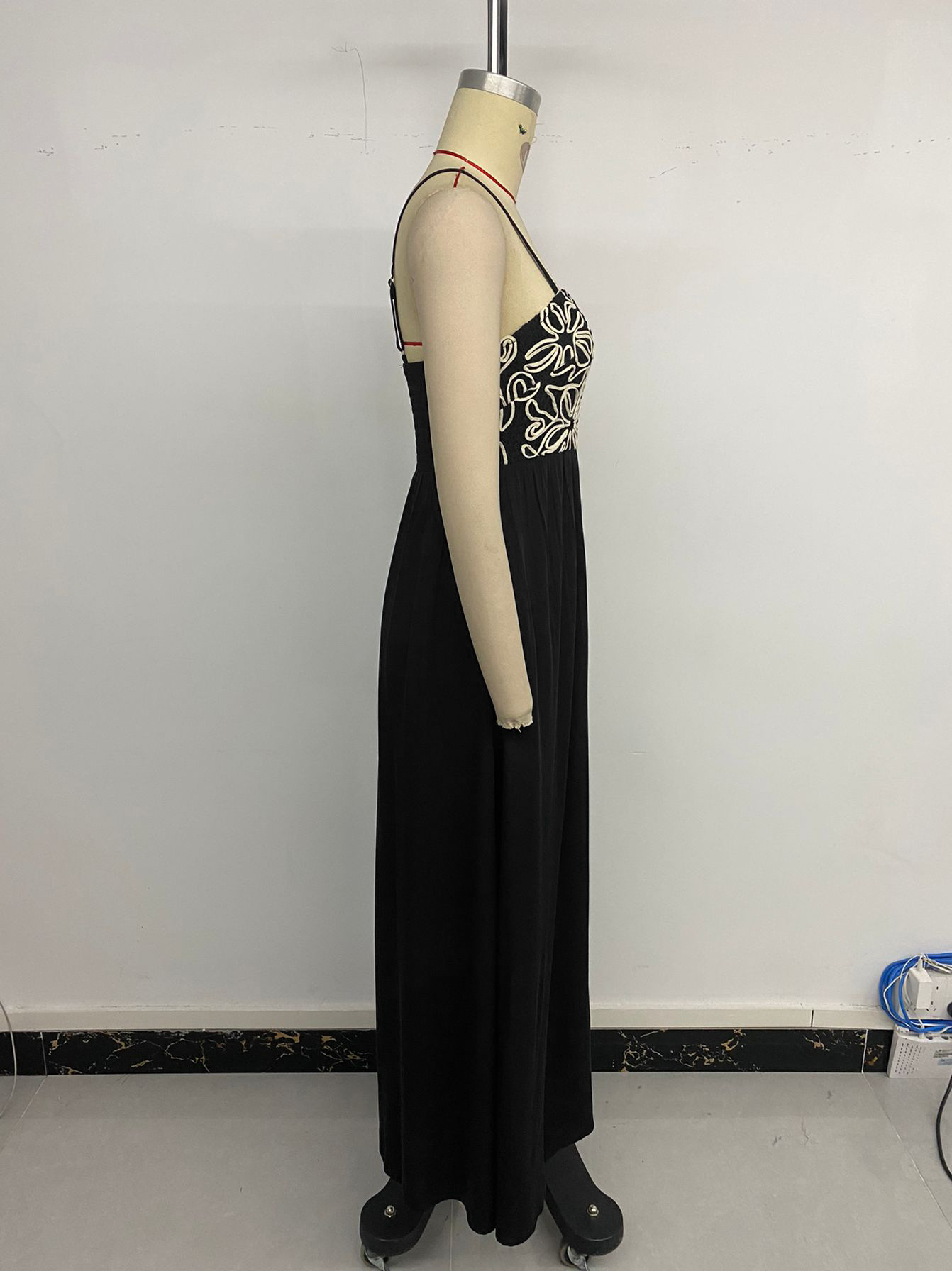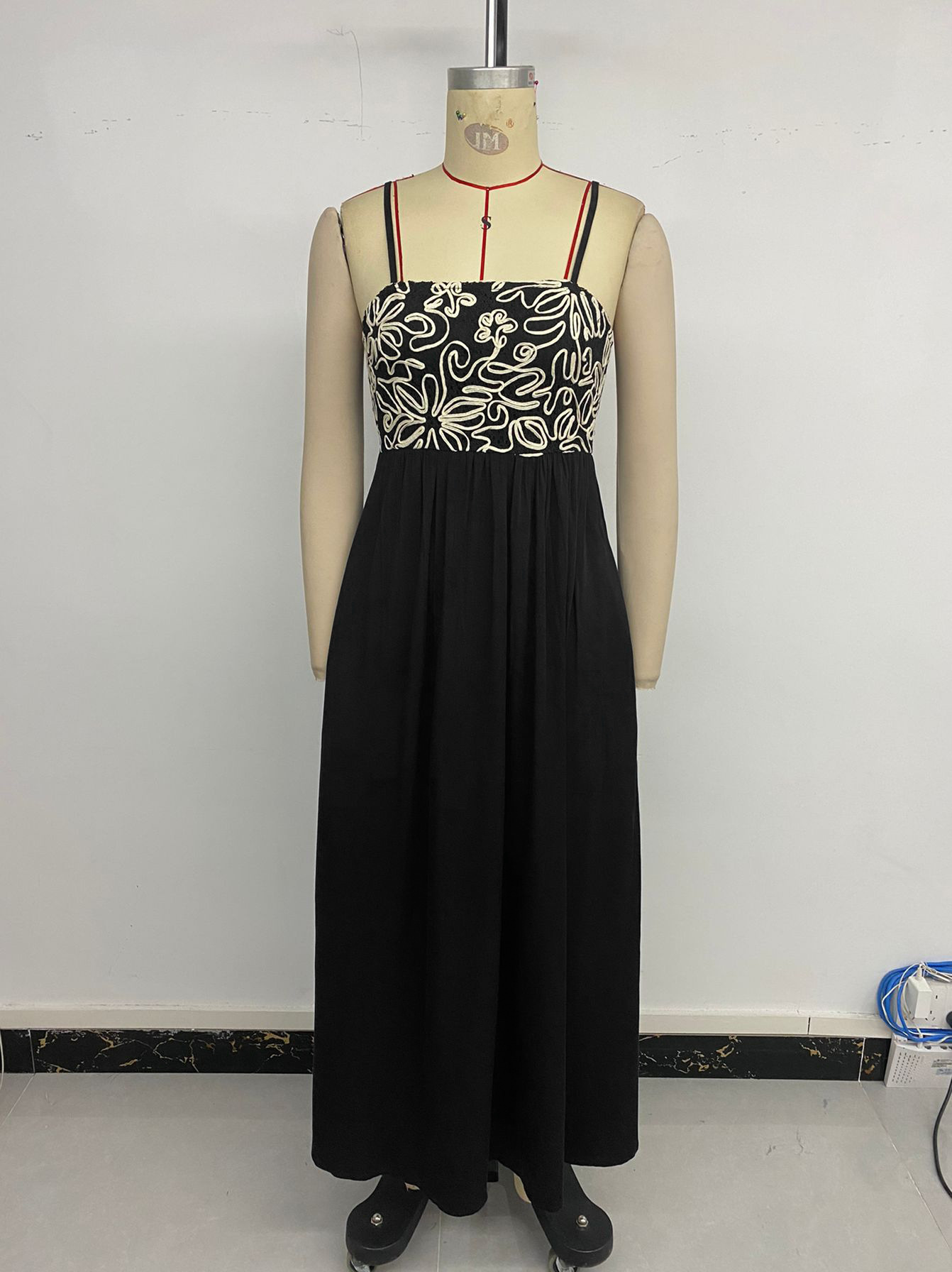 Summer Elegant Simple Slim Fit Embroidery Sling Dress Maxi Dress