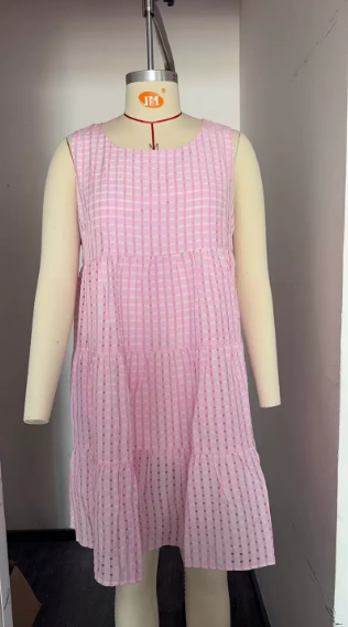 Summer Women Clothing Loose Casual Elegant Sleeveless Plaid Dress