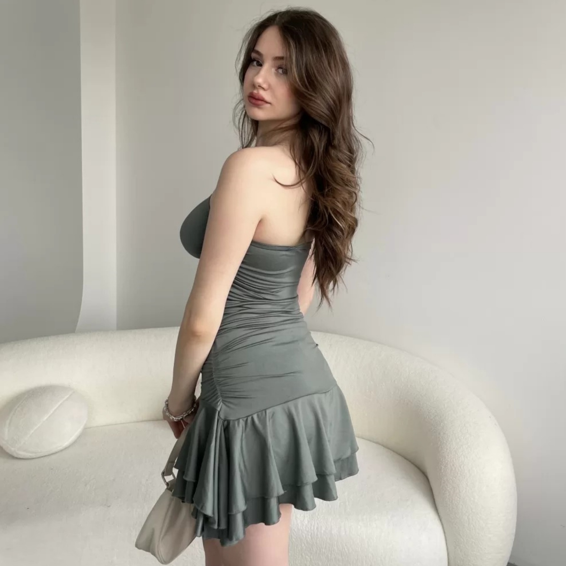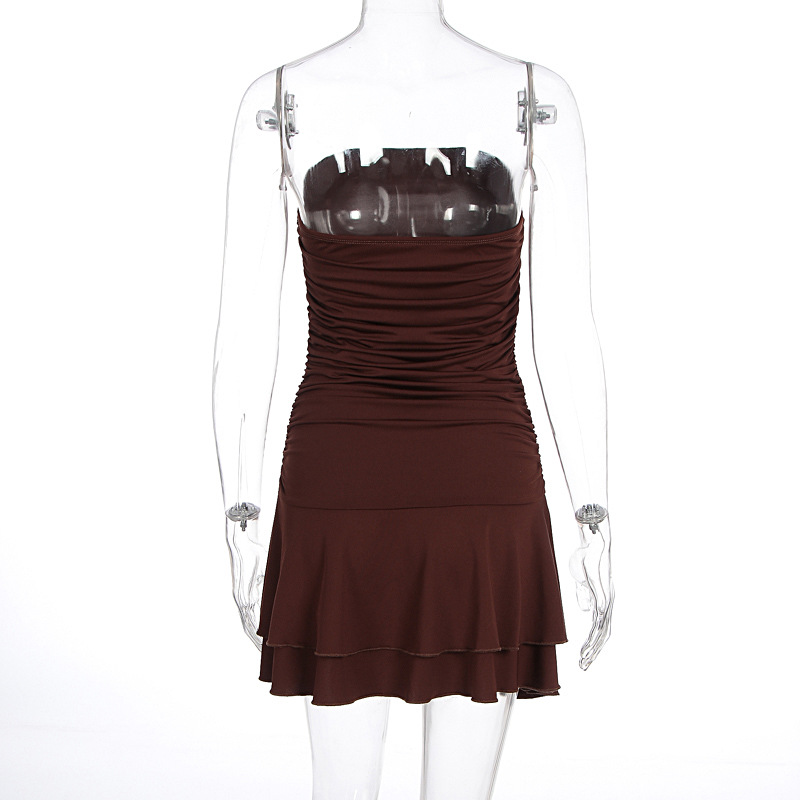 Summer Women Clothing Sexy Slim Fit Ruffled Sheath Tube Top Dress
