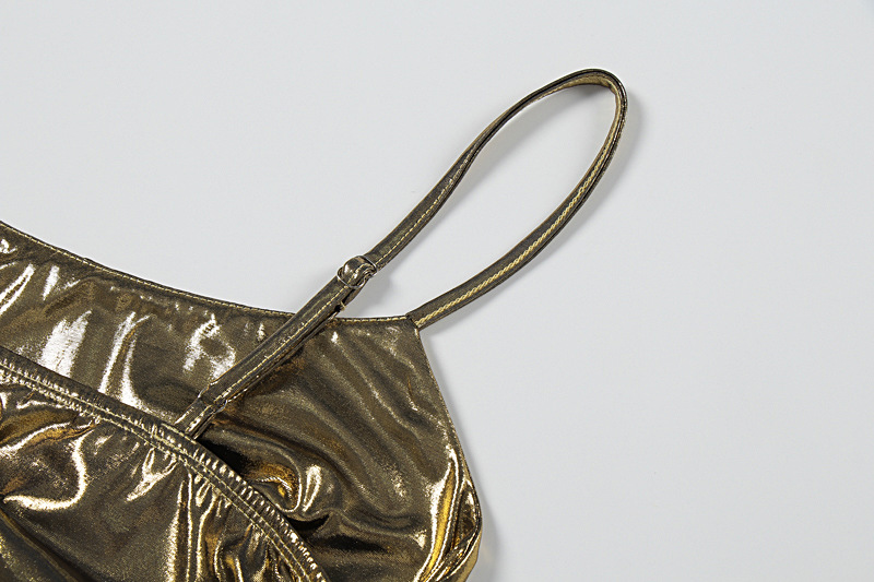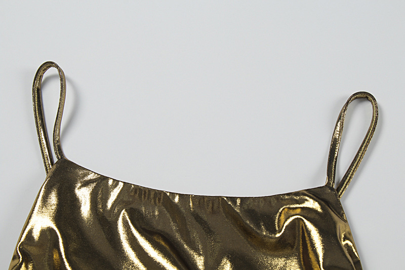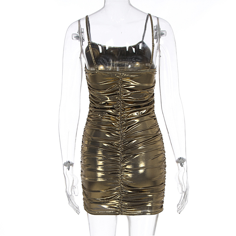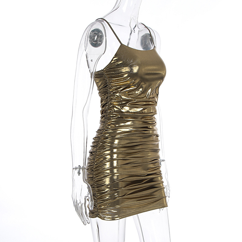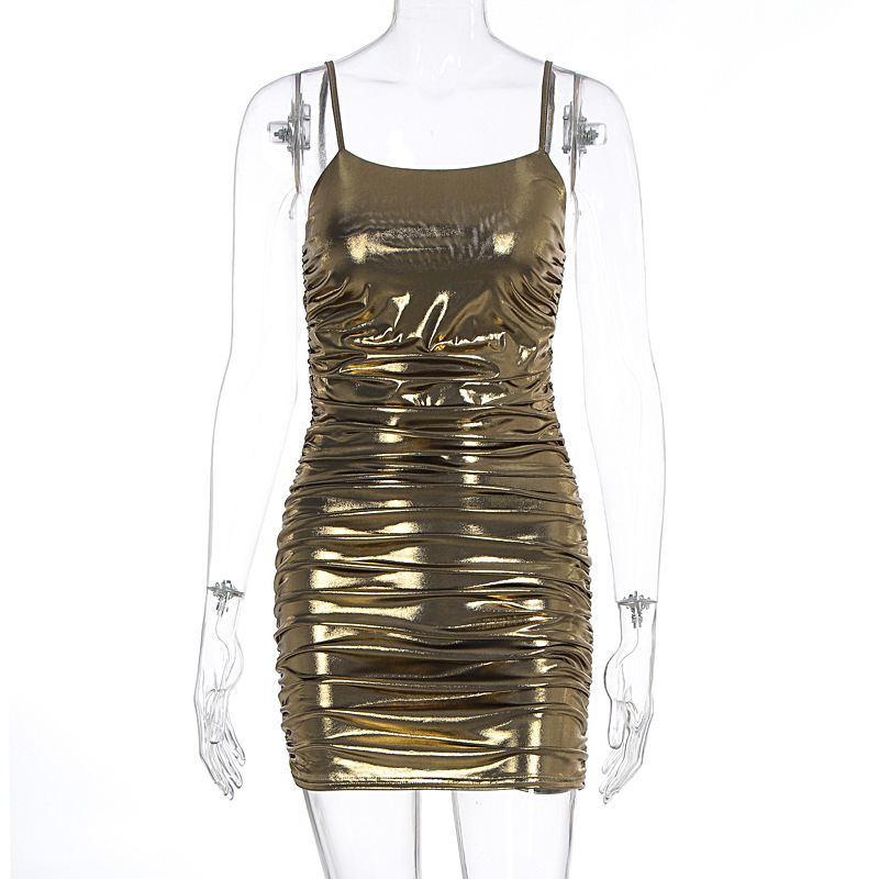 Summer Women Sexy Electronic Music Festival Glossy Bronzing Sling Sheath Dress