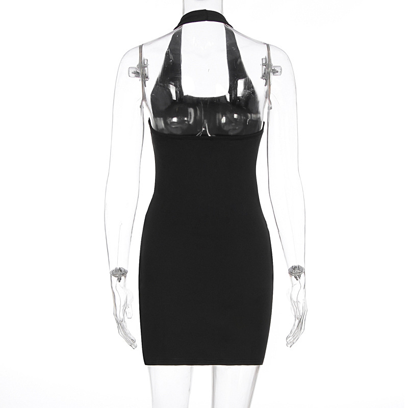 Summer Women Sexy Metal Decorative Lace up Backless Sheath Dress