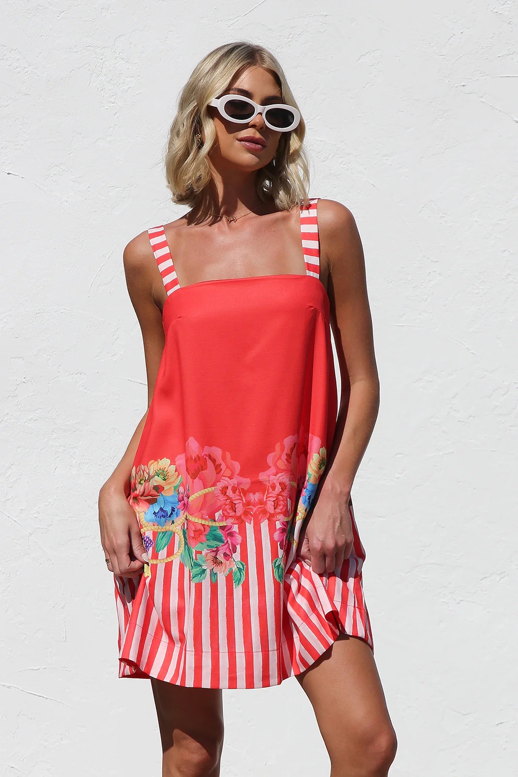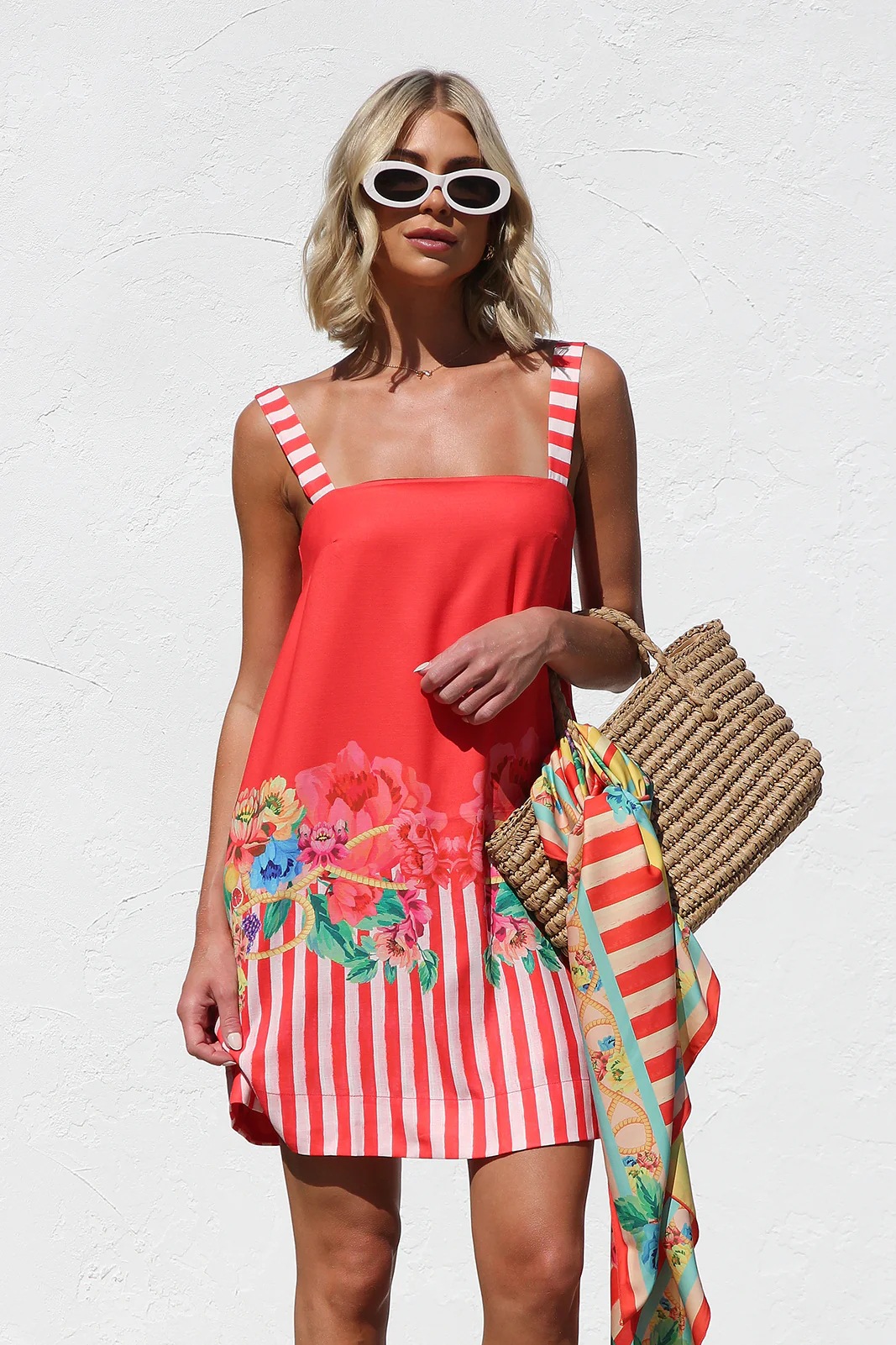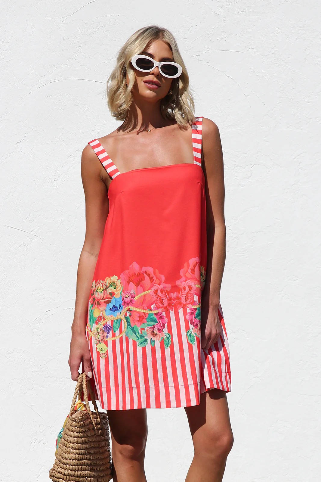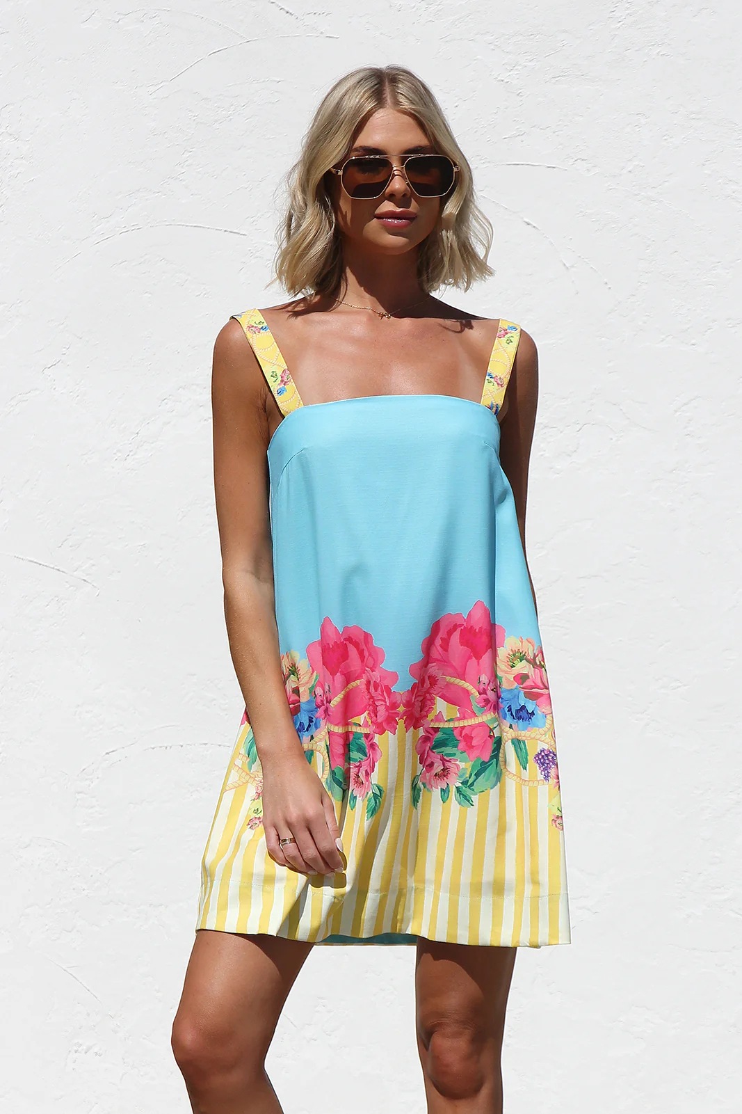 Suspender Skirt Positioning Printing A Swing Mini Suspender Dress for Women
