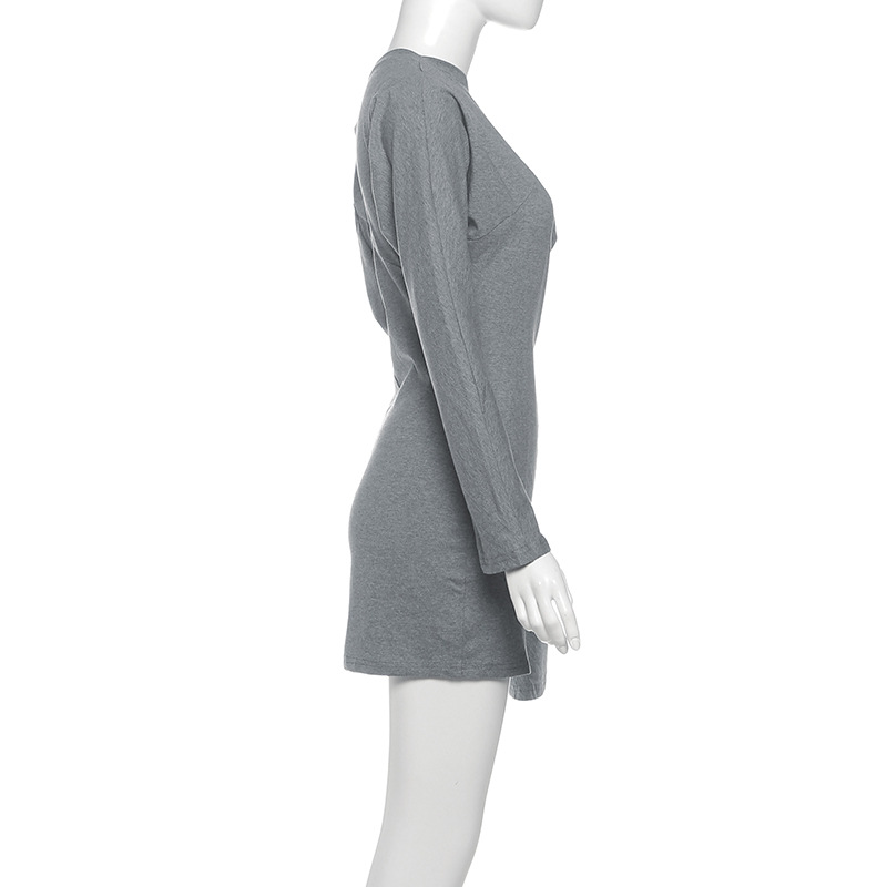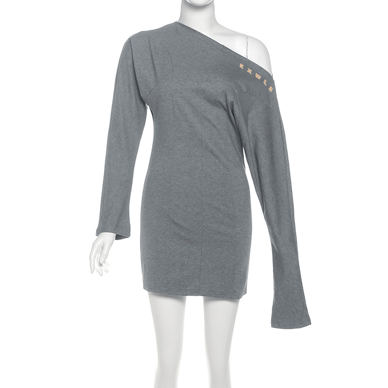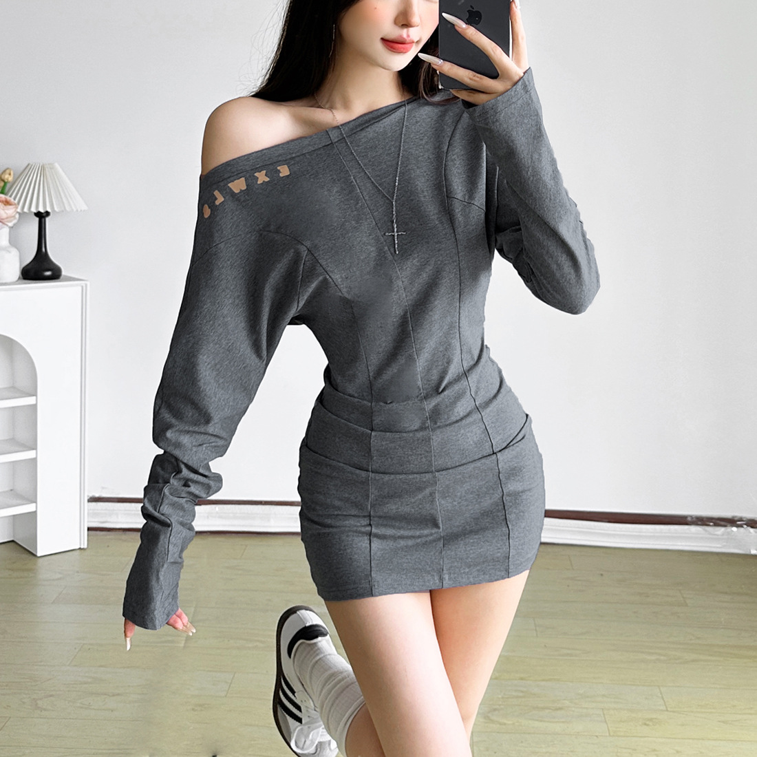 Trend Fall Women Clothing Jennie Same Sexy One Shoulder Cold Shoulder Long Sleeve Waist Dress
