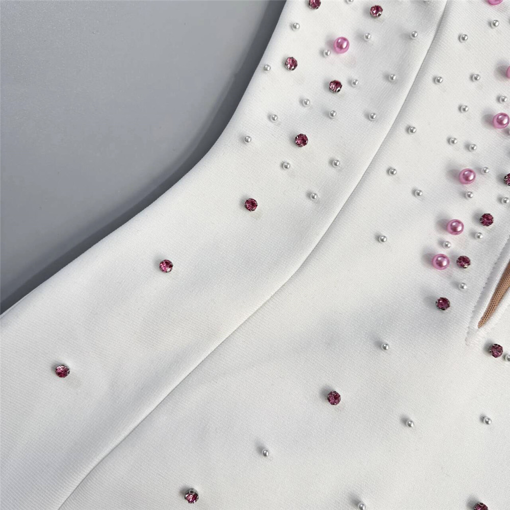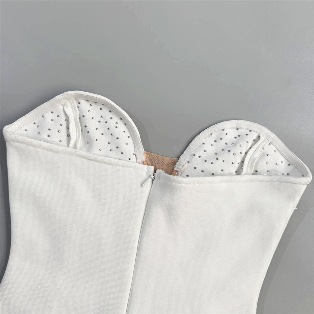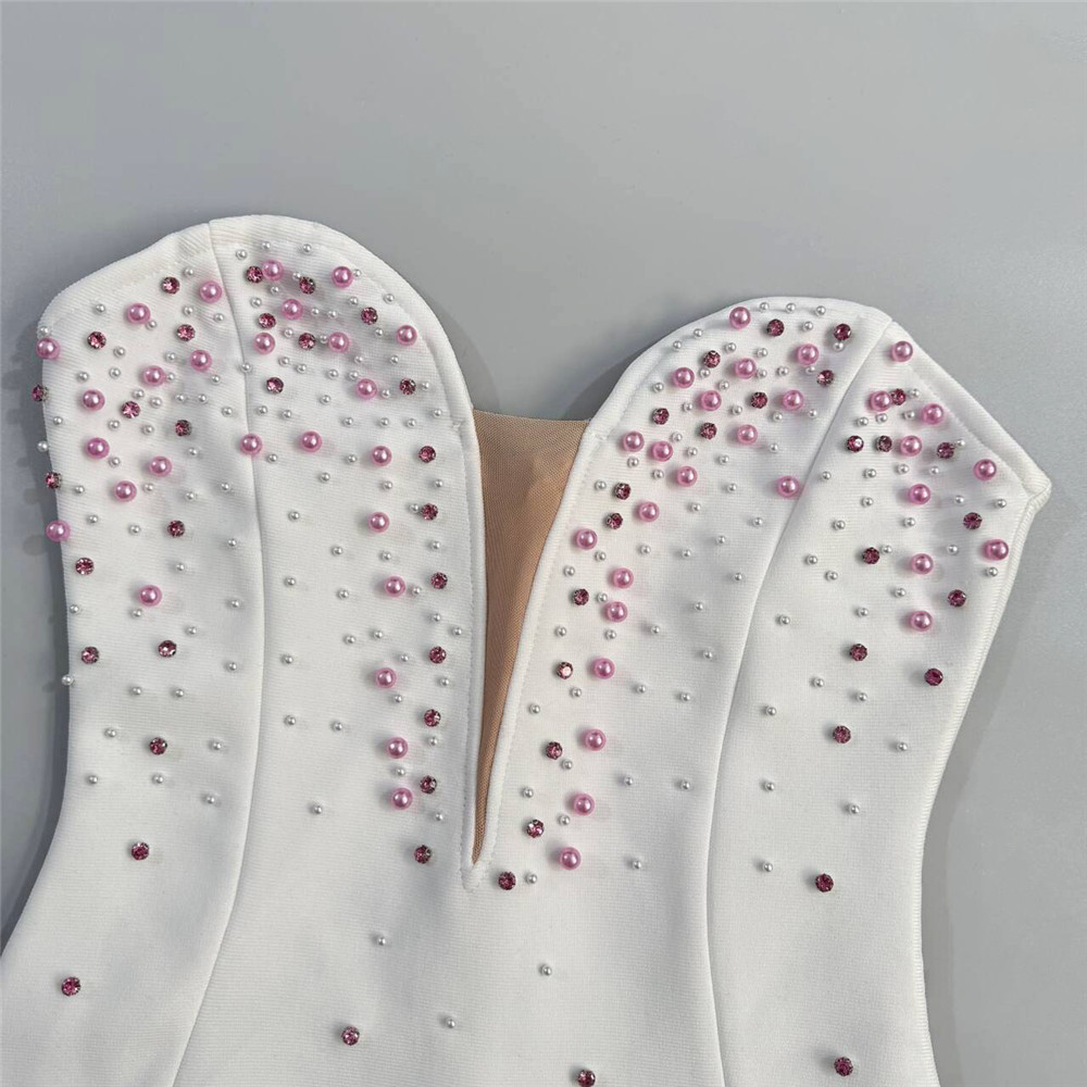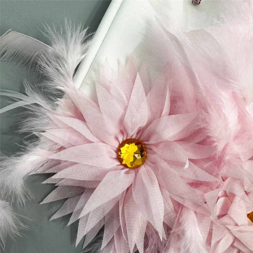 Tube Top Beads Rhinestones Bandage One Piece Dress Pink Feather Ladies Party Cocktail Evening Dress