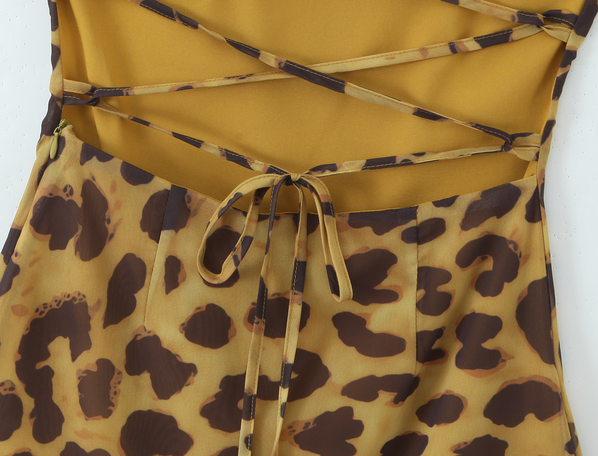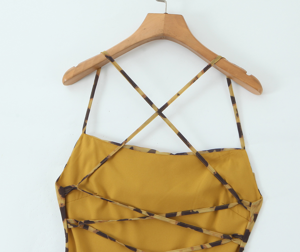Women Clothing All Match Classic Printing Lace up Backless Dress