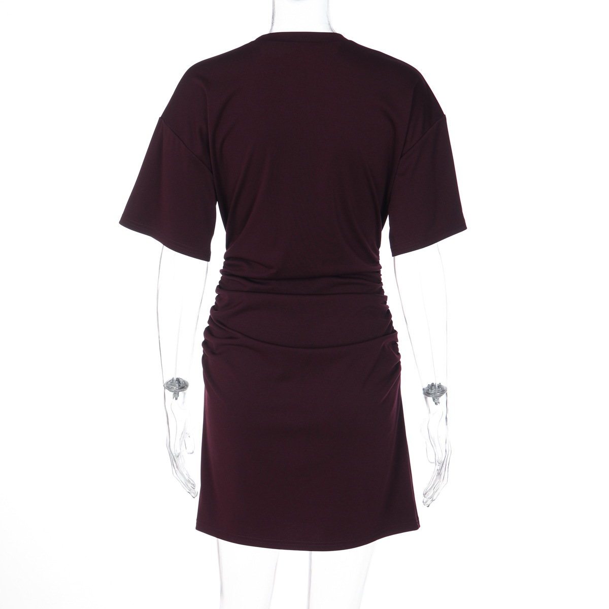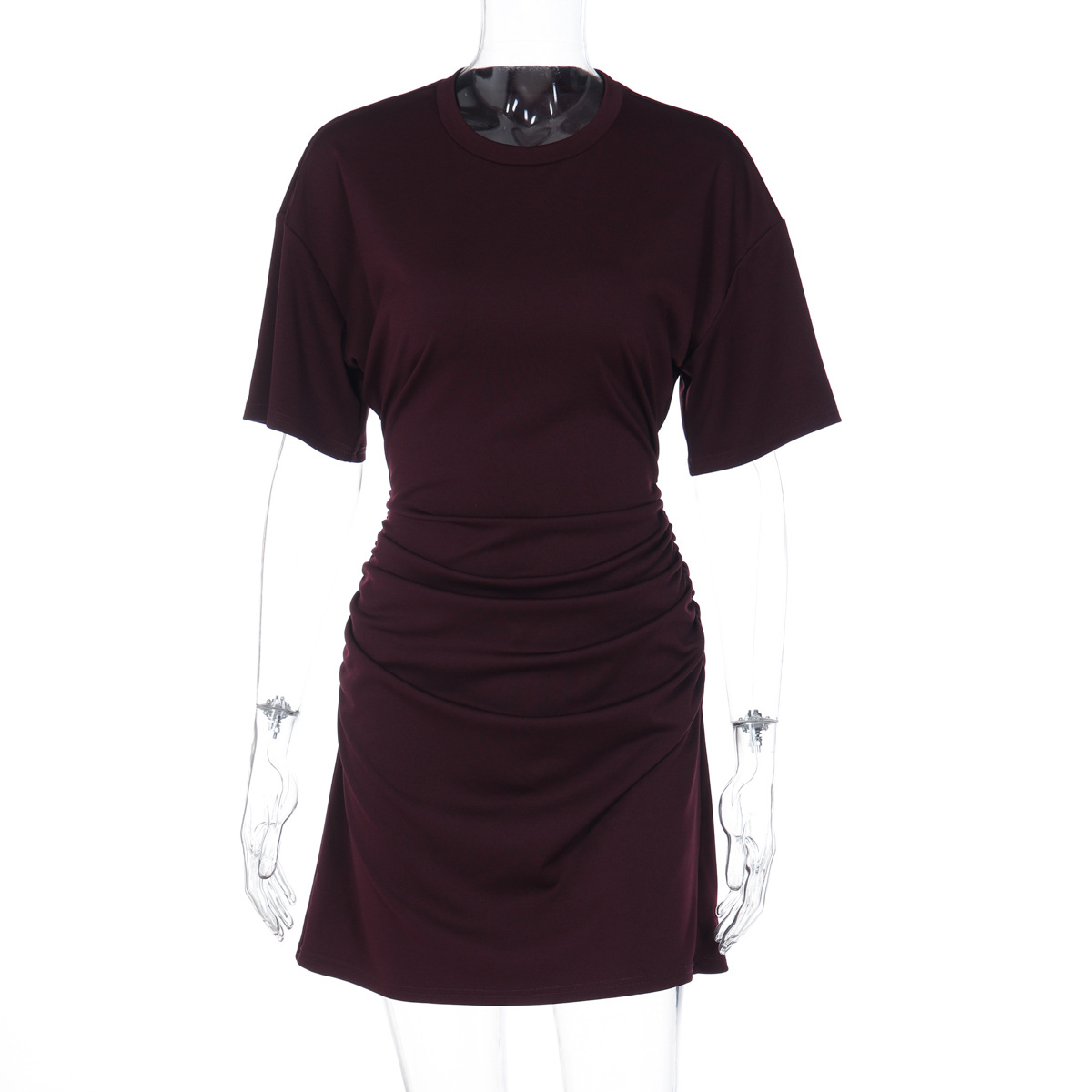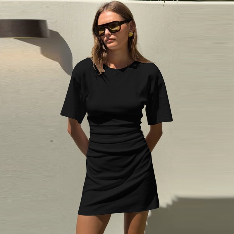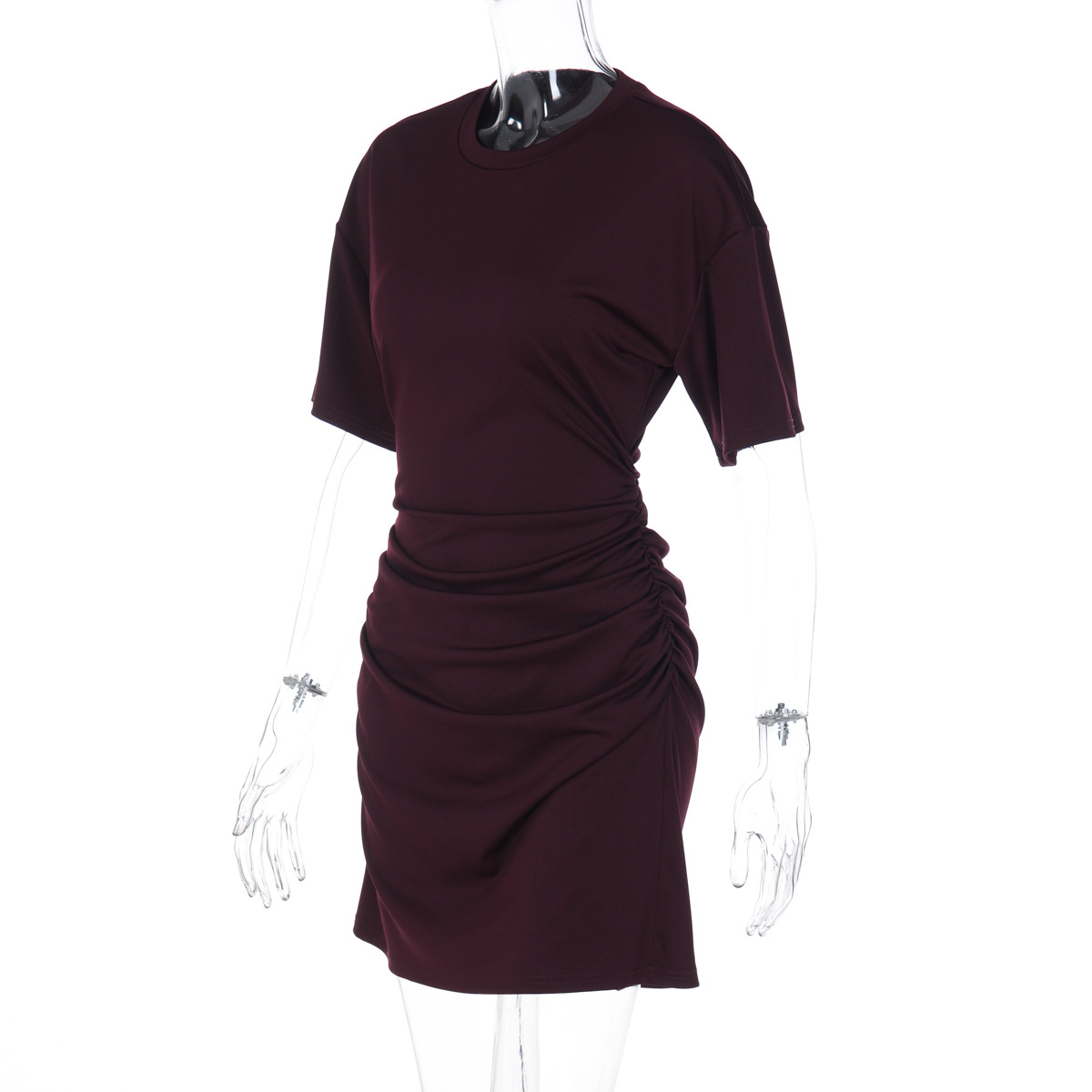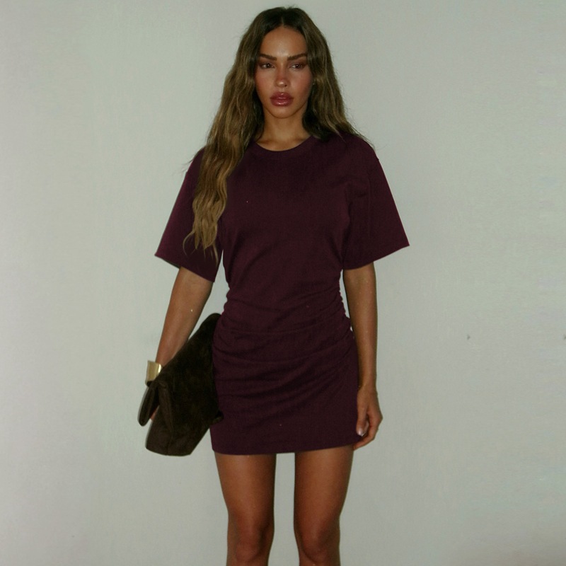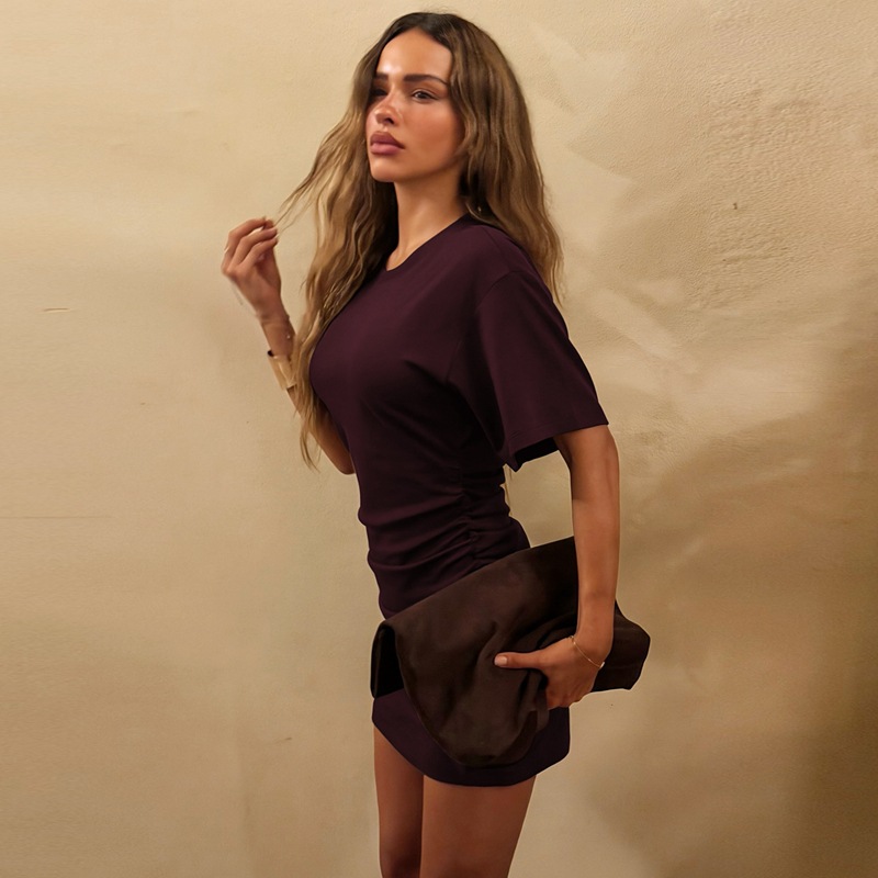 Women Clothing Autumn All Match Simple Pleated Waist Tight Slimming Dress