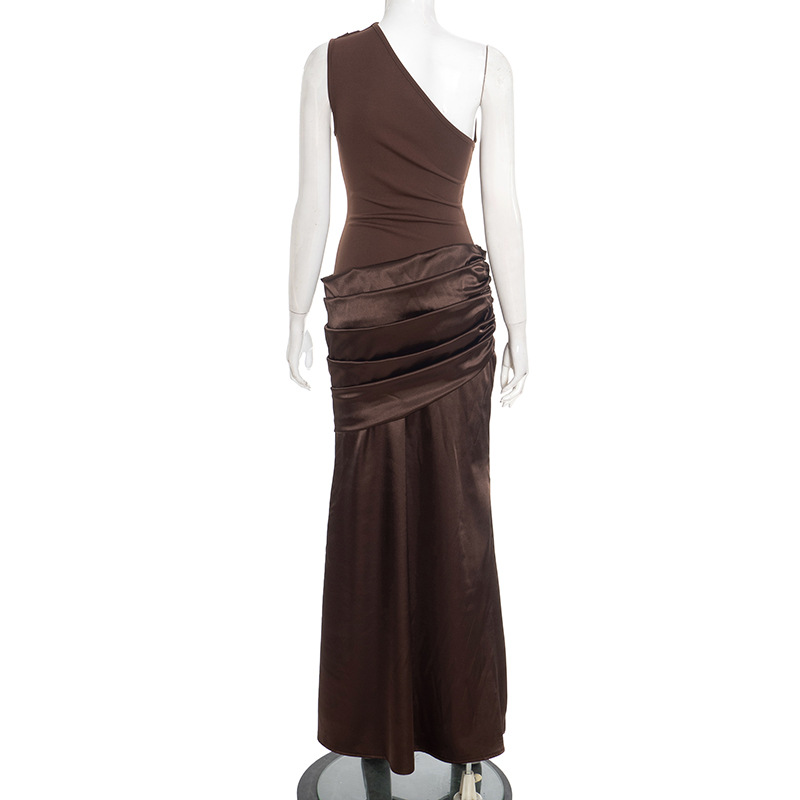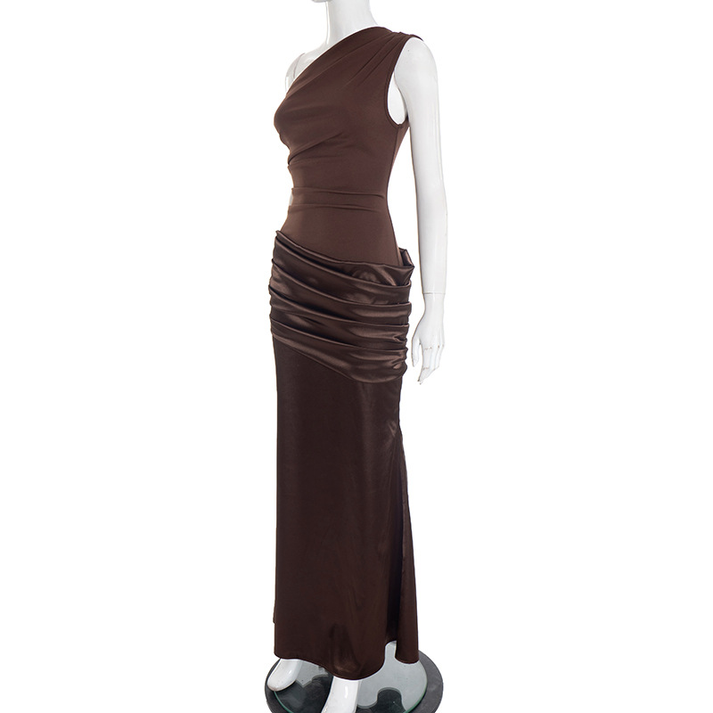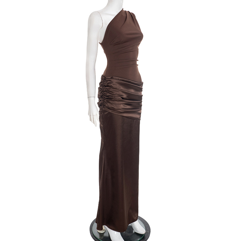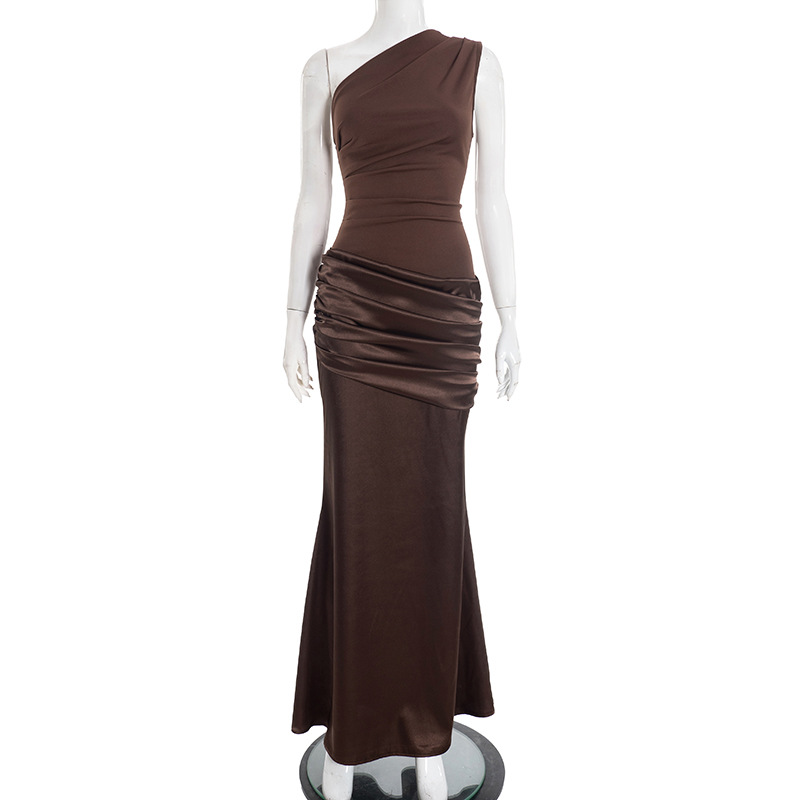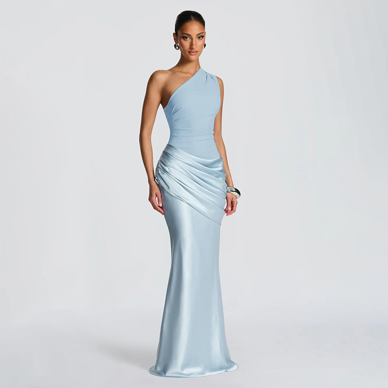 Women Clothing Autumn Winter Expensive Socialite One Shoulder Pleated Stitching Hip Fishtail Dress