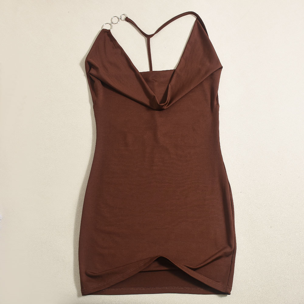 Women Clothing Sexy Slim Strap Deep V Plunge Swing Collar Backless Sheath Dress