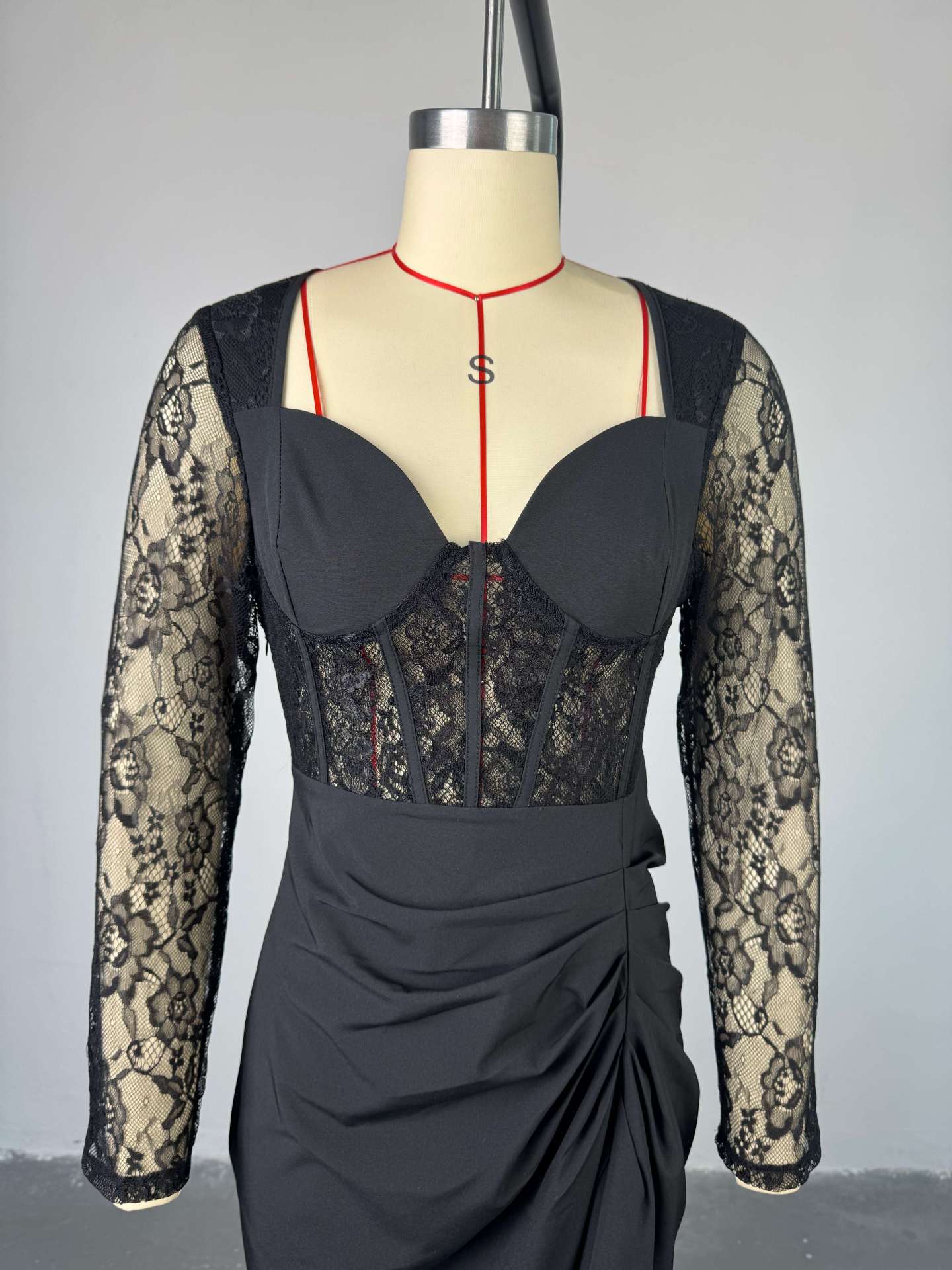 Element: Lace/Tulle/Fishnet,Asymmetric,Boning,Ruched