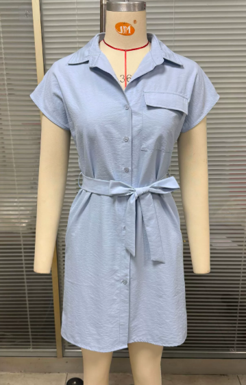 Women Clothing Spring Summer Solid Color Casual Lace up Waist Tight Woven Dress