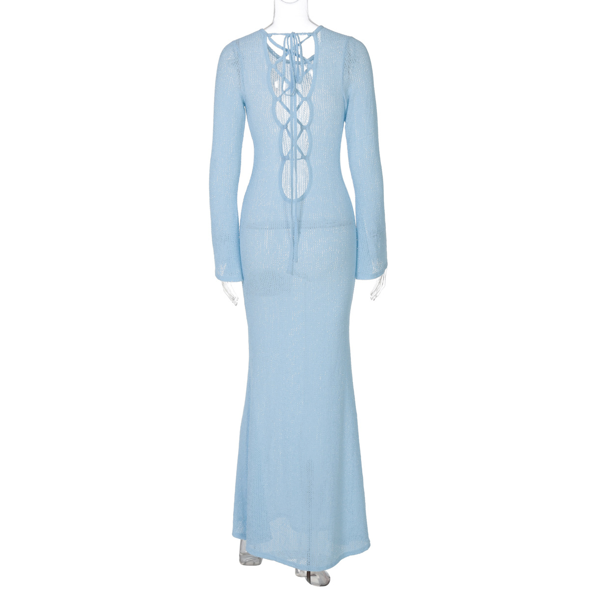 Women Clothing Summer Sexy Backless Lace up See through Dress