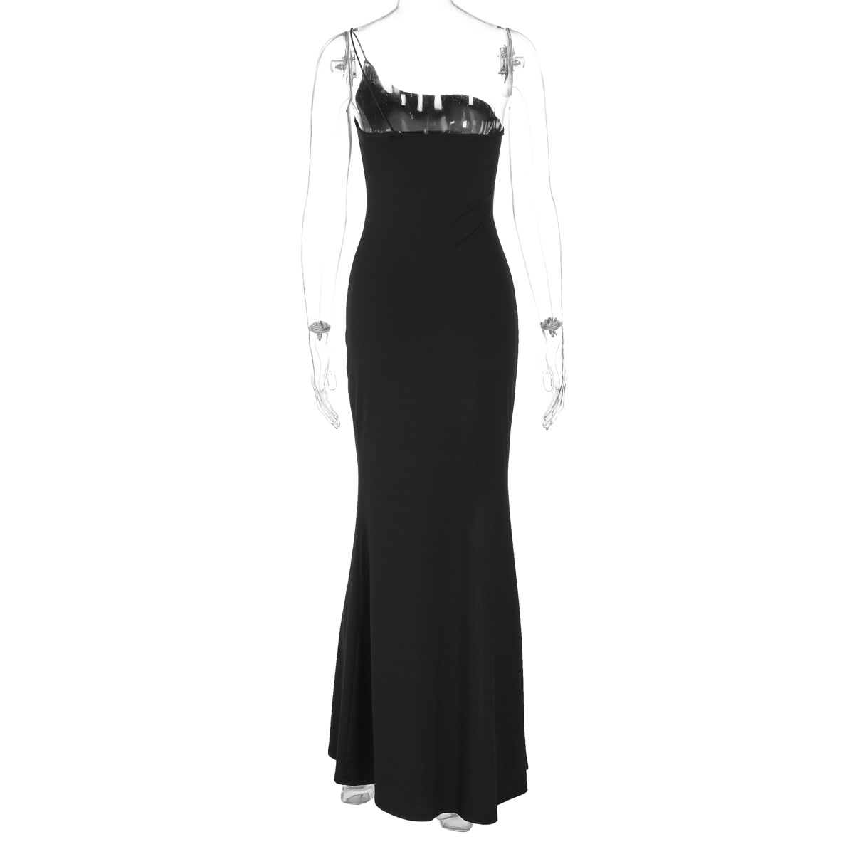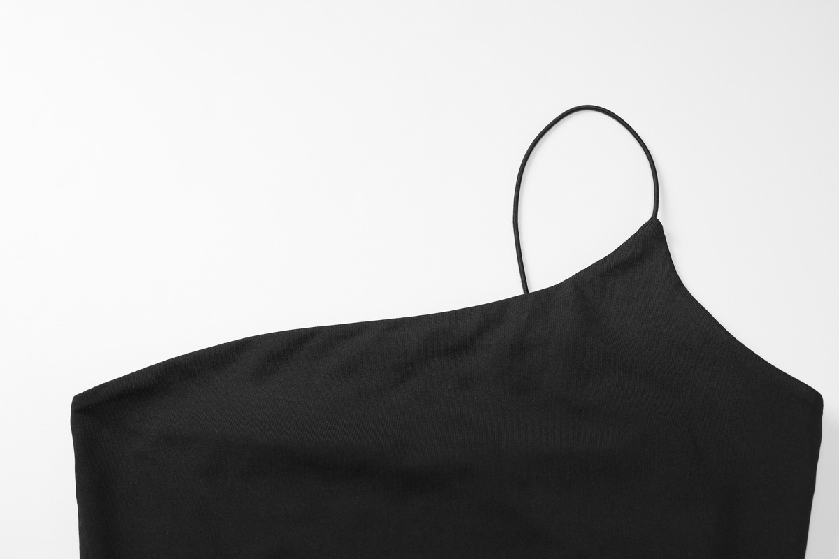 Women Clothing Summer Sexy Solid Color One Shoulder Sleeveless Sleeveless Split Dress