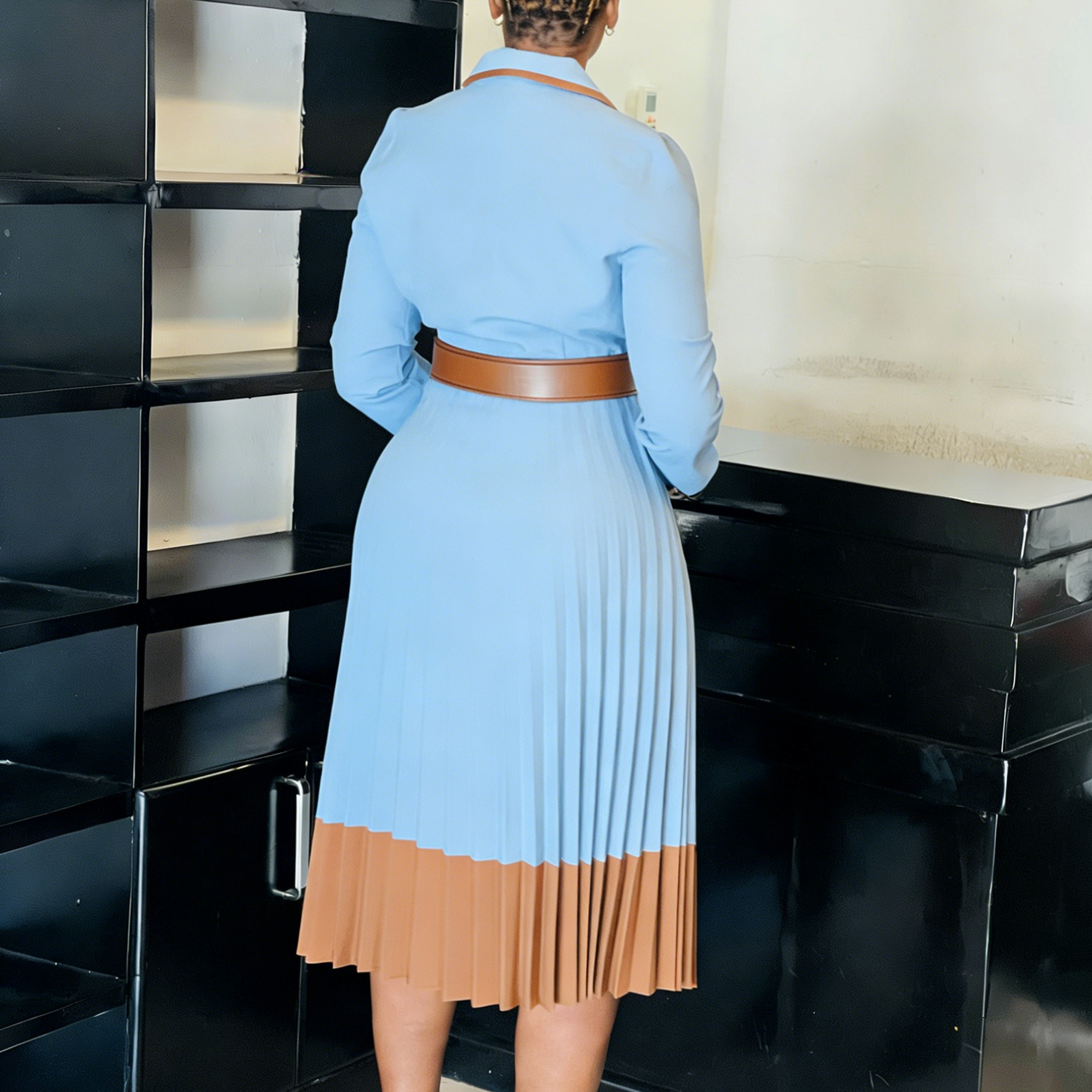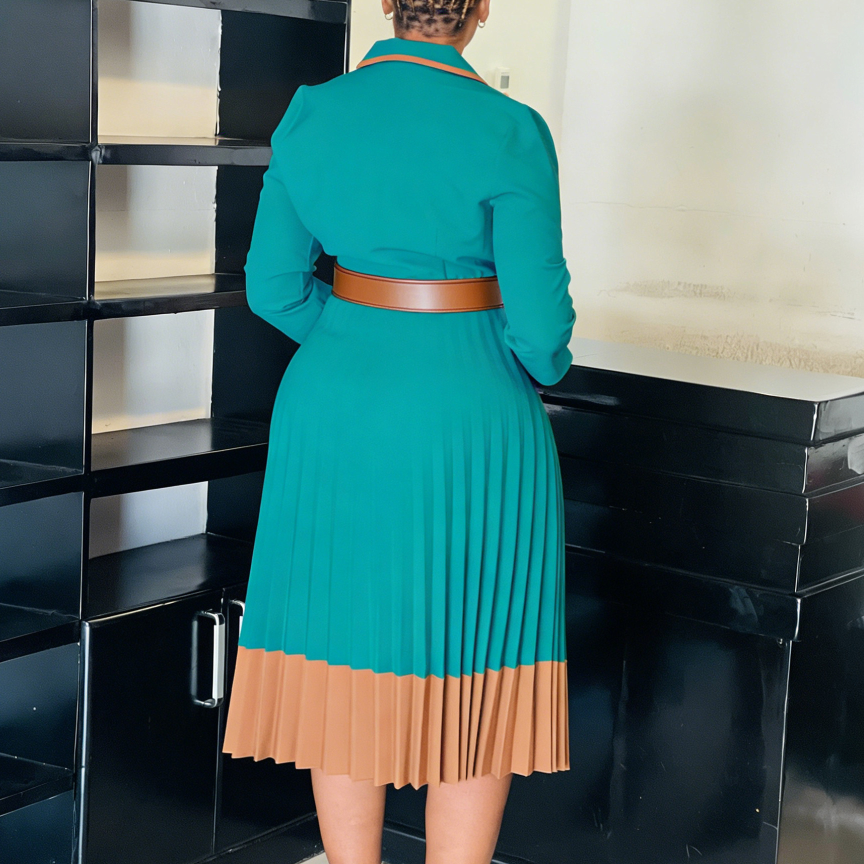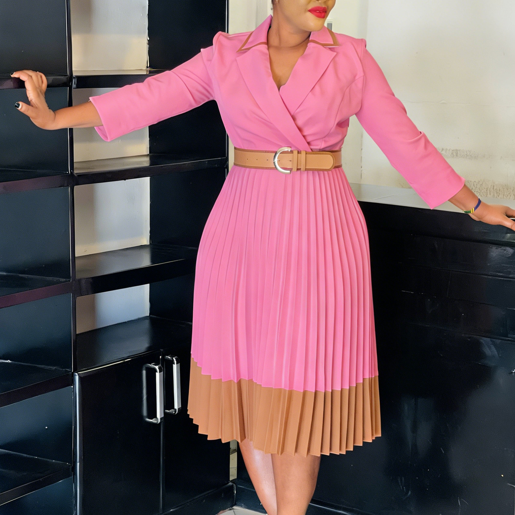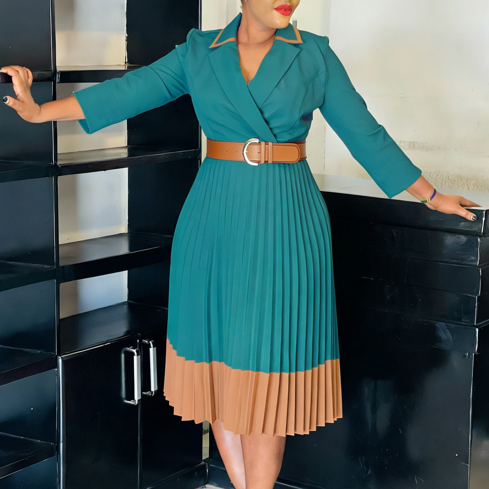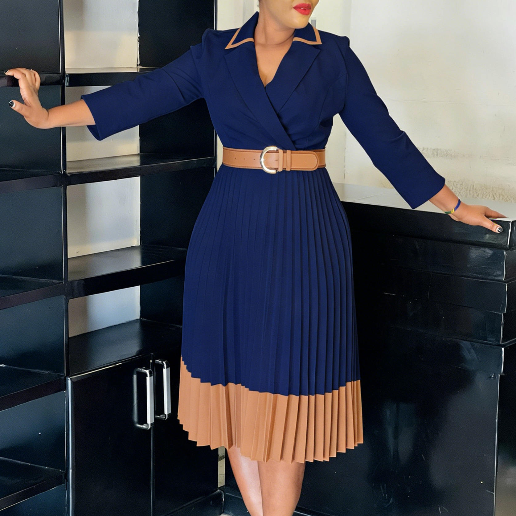 Women Clothing Winter Elegant Elegant Blazers Collar Color Matching Pleated Dress