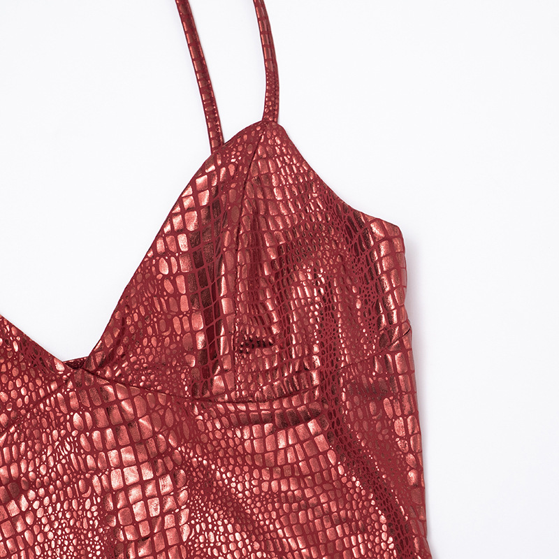 Women Clothing Winter Solid Color Sleeveless Stitching Bronzing Strap Tight Short Dress