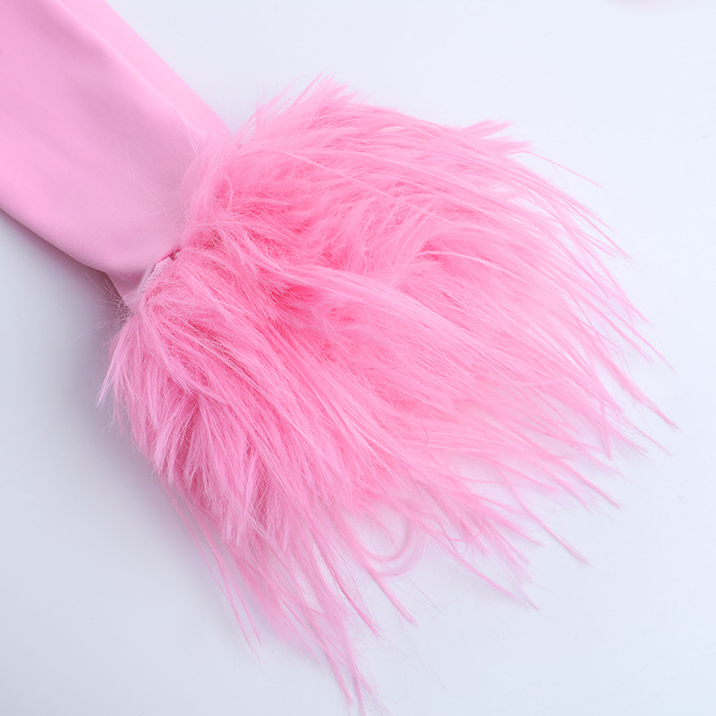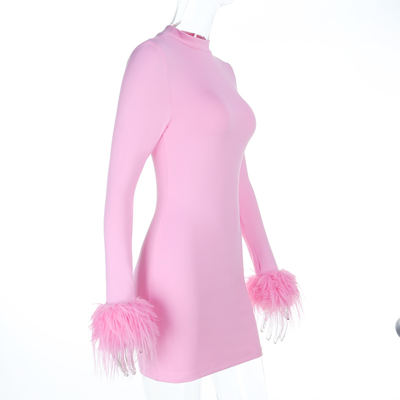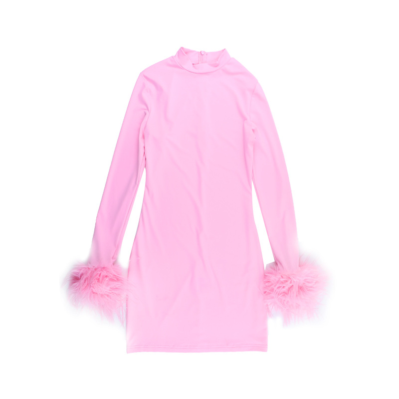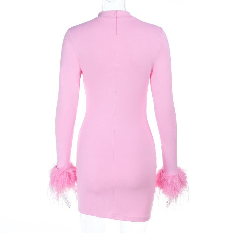 Women Half Turtleneck Sexy Slim Hip Furry Long Sleeve Short Dress