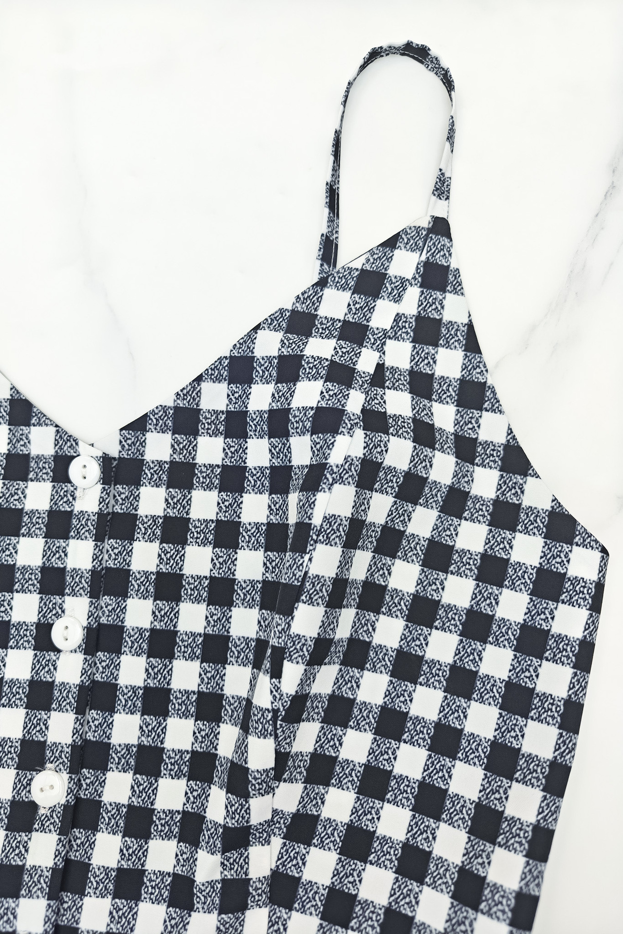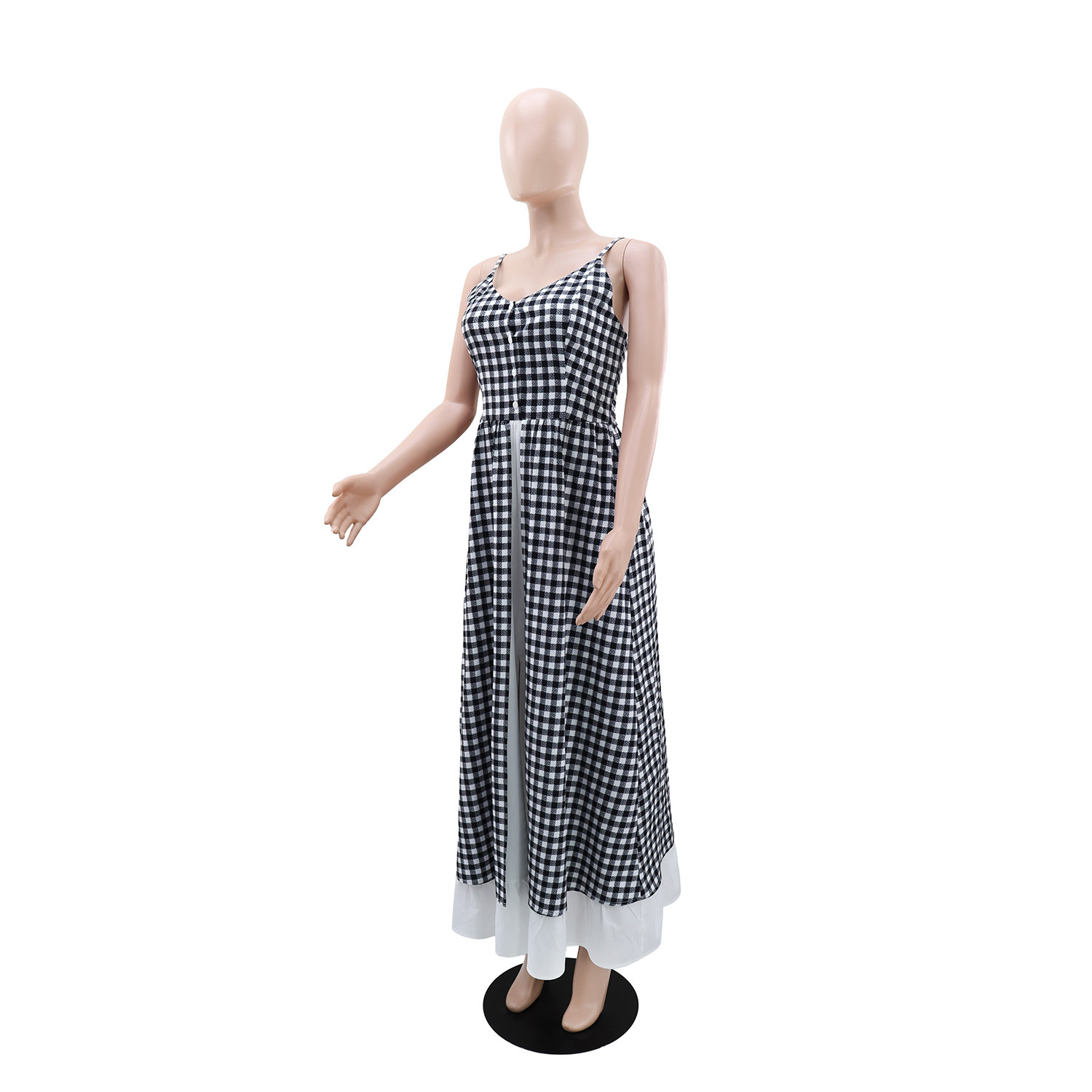 Women V neck Brace Casual Printing Plaid Split Faux Two Pieces Dress