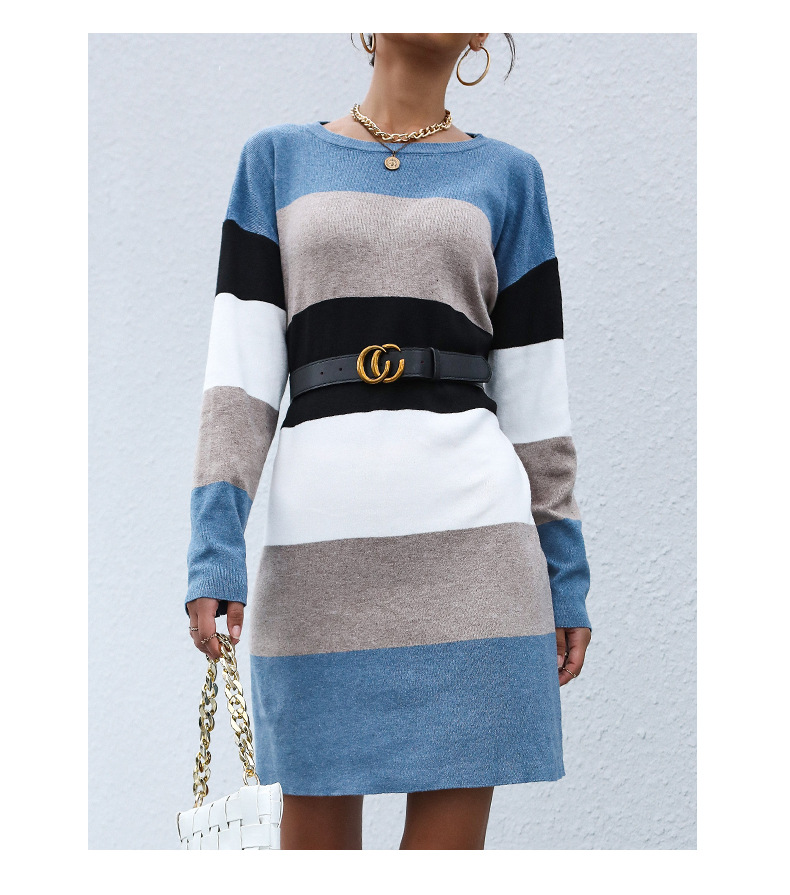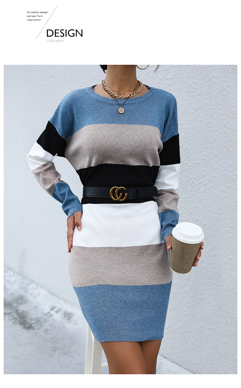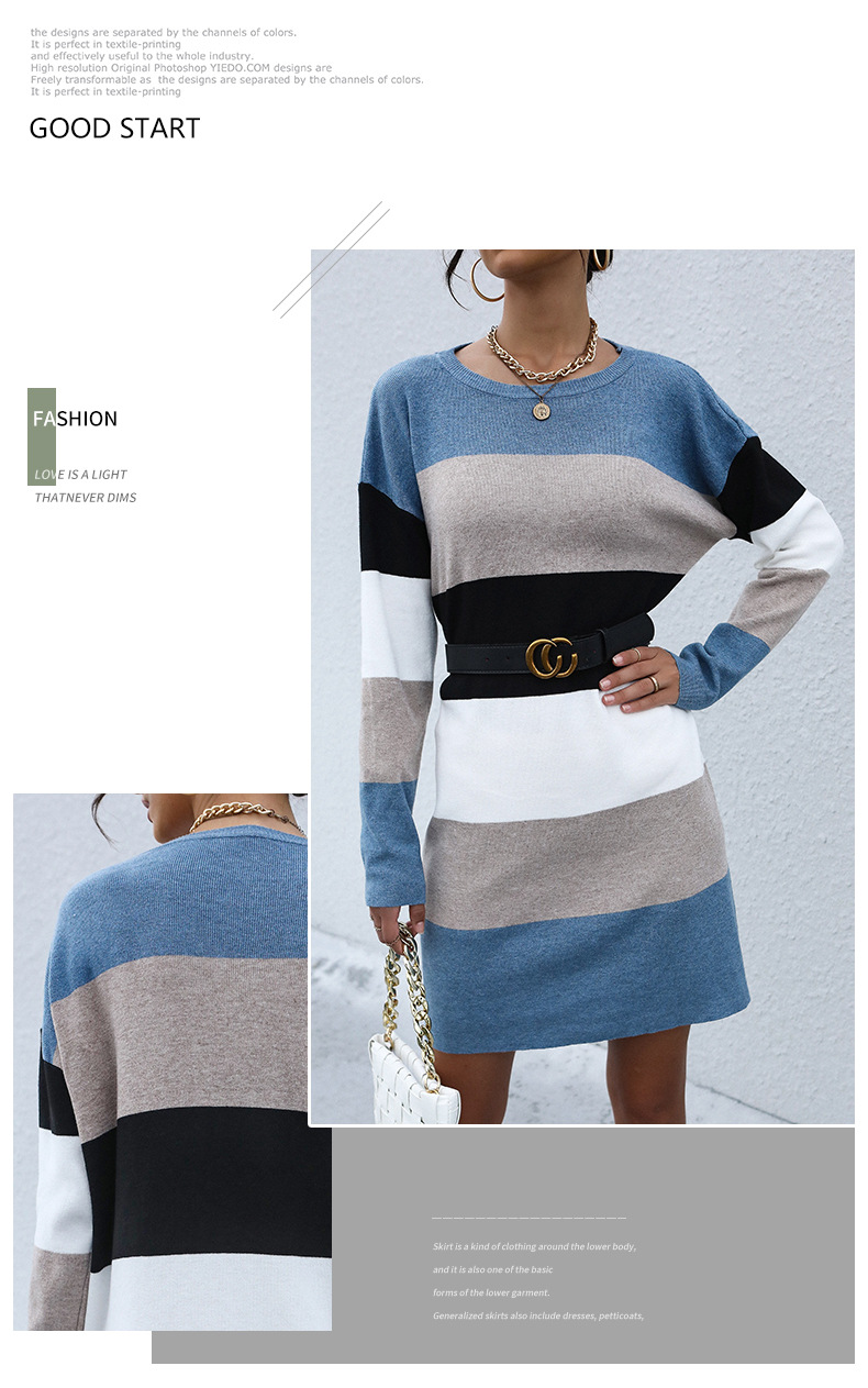 Women Wear Early Autumn Casual Color Matching Long Sleeve Sweater Dress