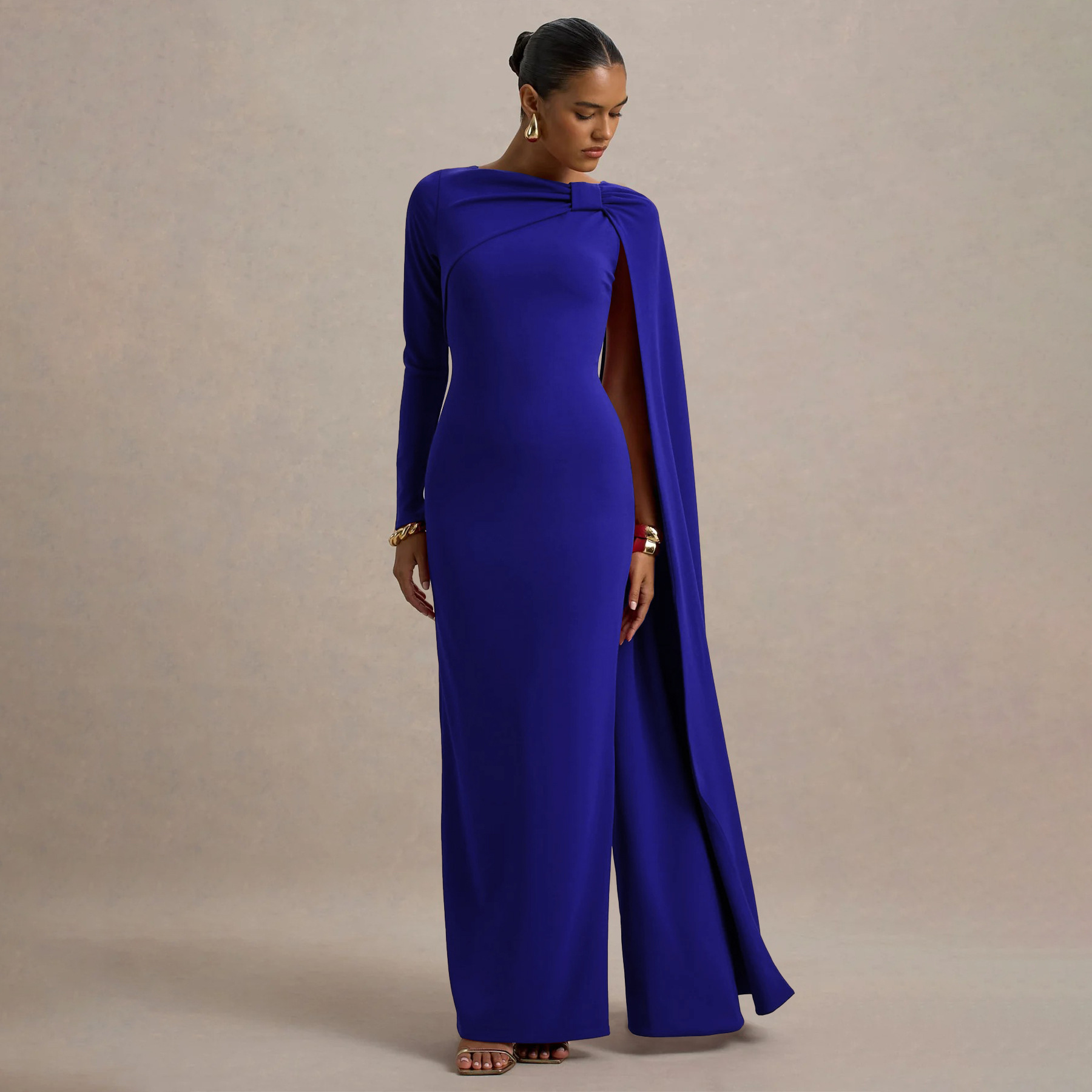 Women Wear One Shoulder Ribbon Evening Dress Long Sleeve Sexy Sheath Dress