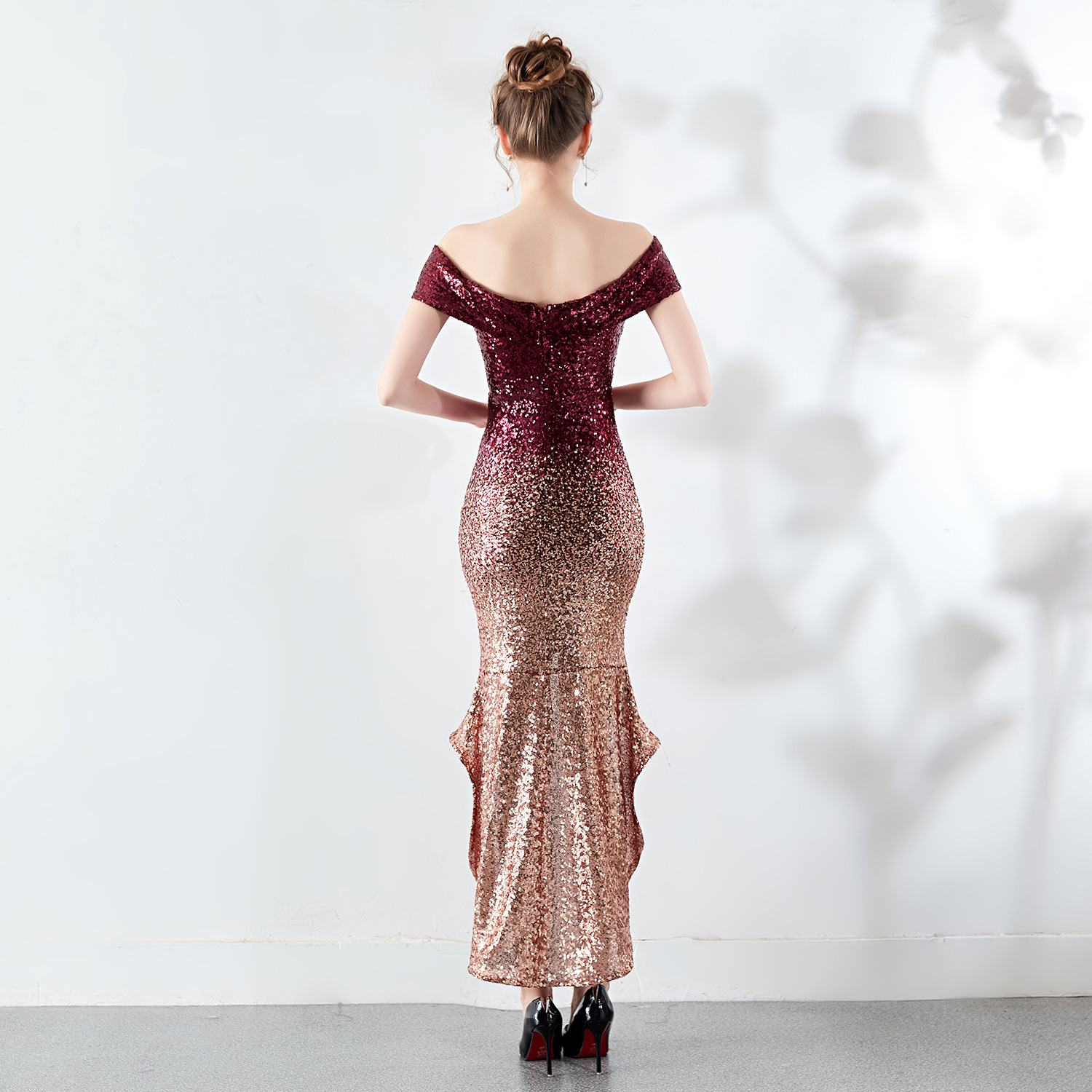 Wrapped Chest See through L Gradient Sequin Sheath Sexy Dress Wedding Cocktail Party Gift