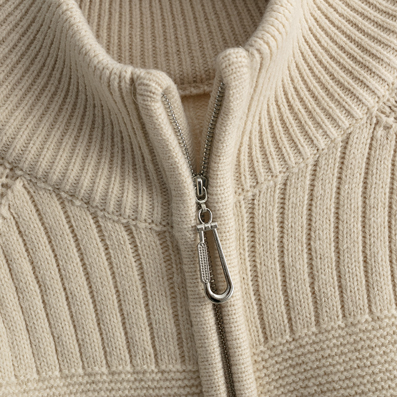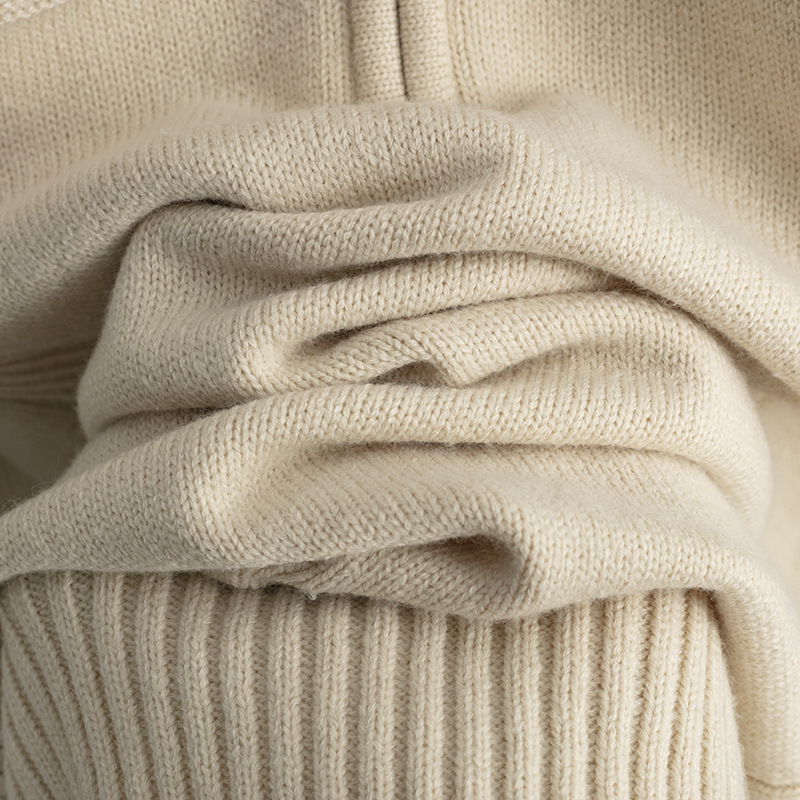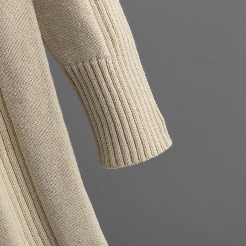 Zipper Woolen Autumn Winter Long Sleeve Thick Loose Mid Length Knitted Dress